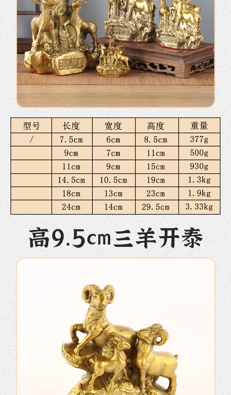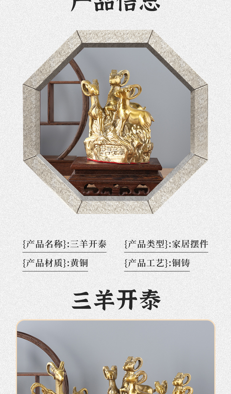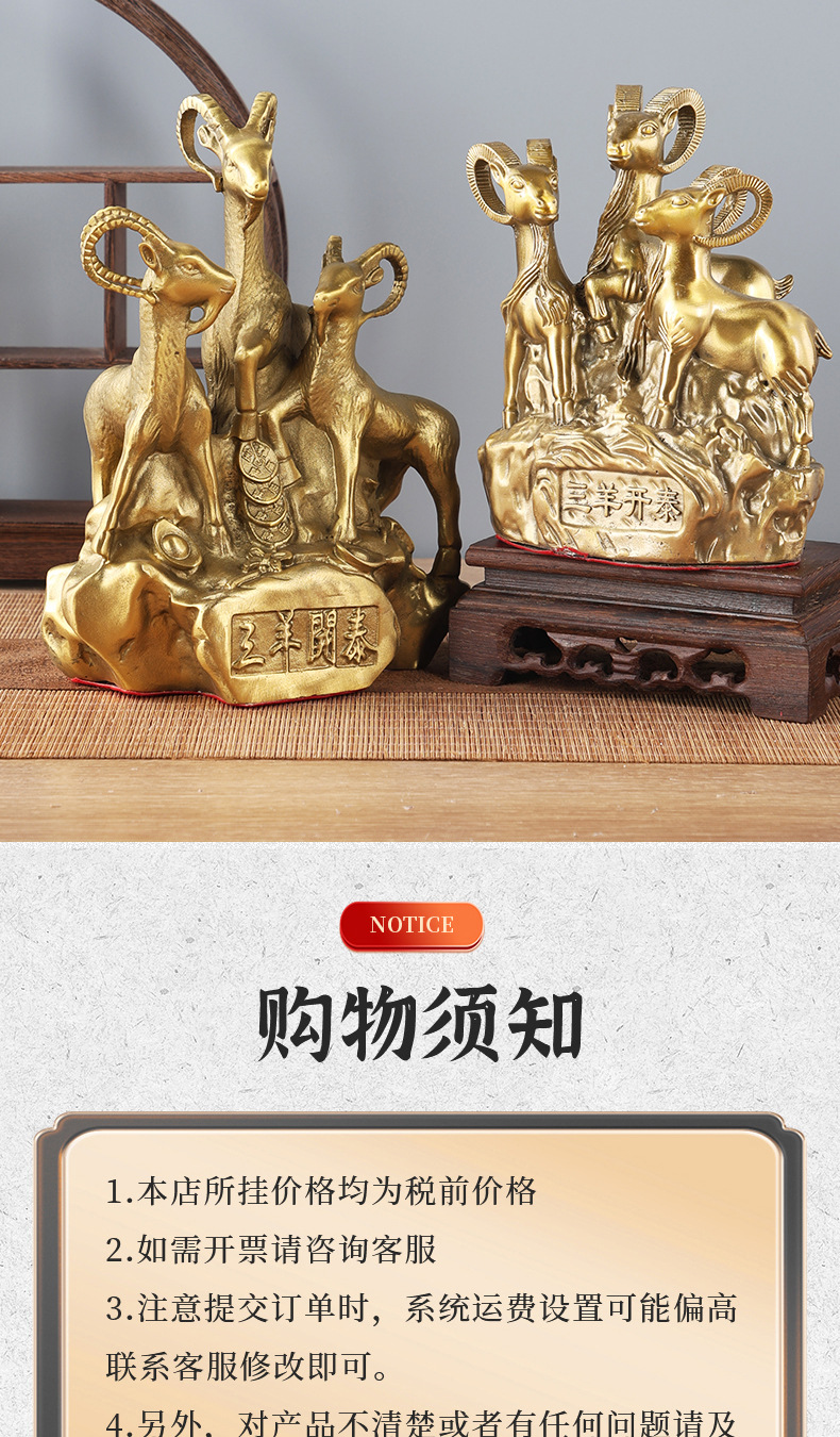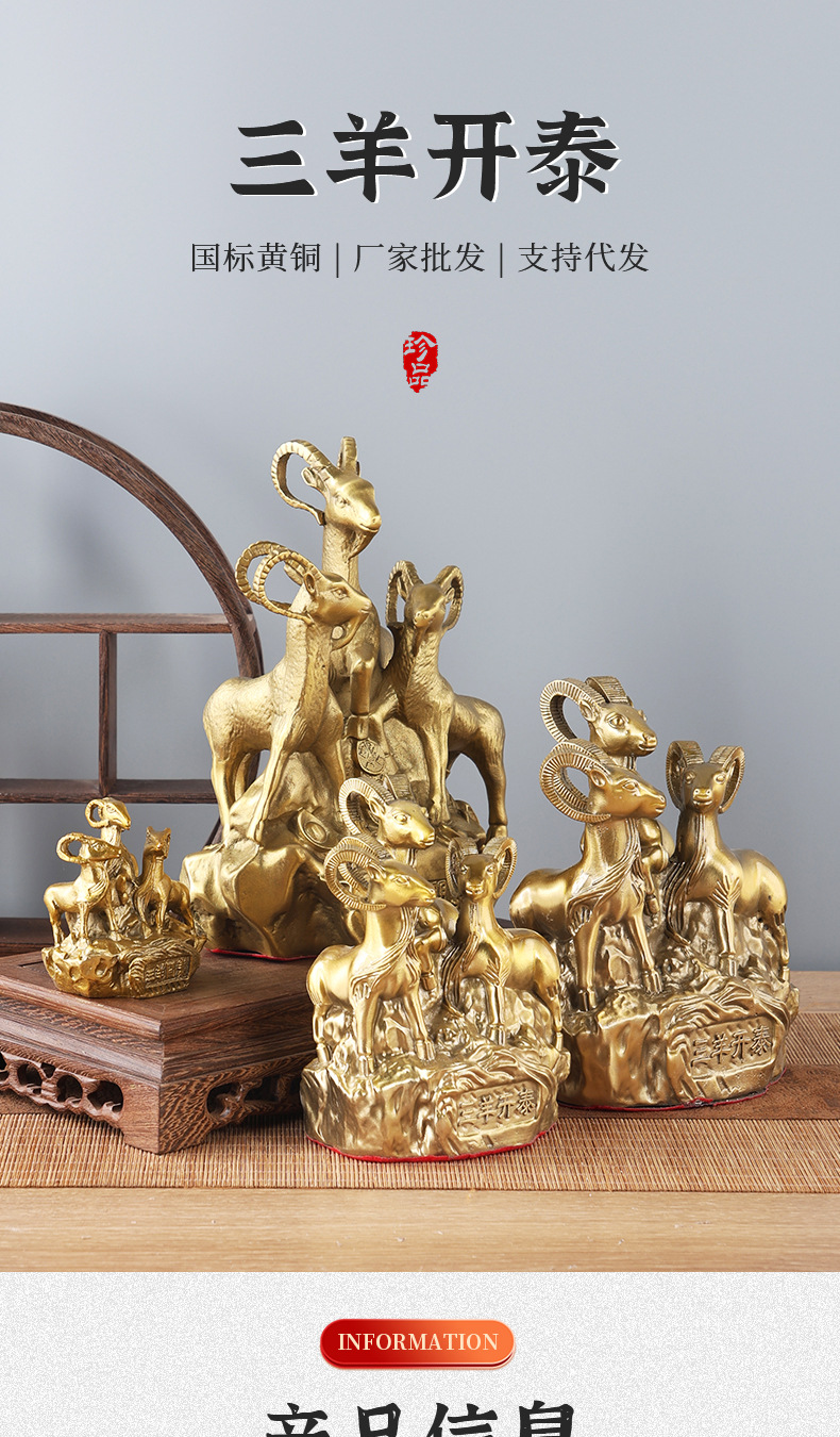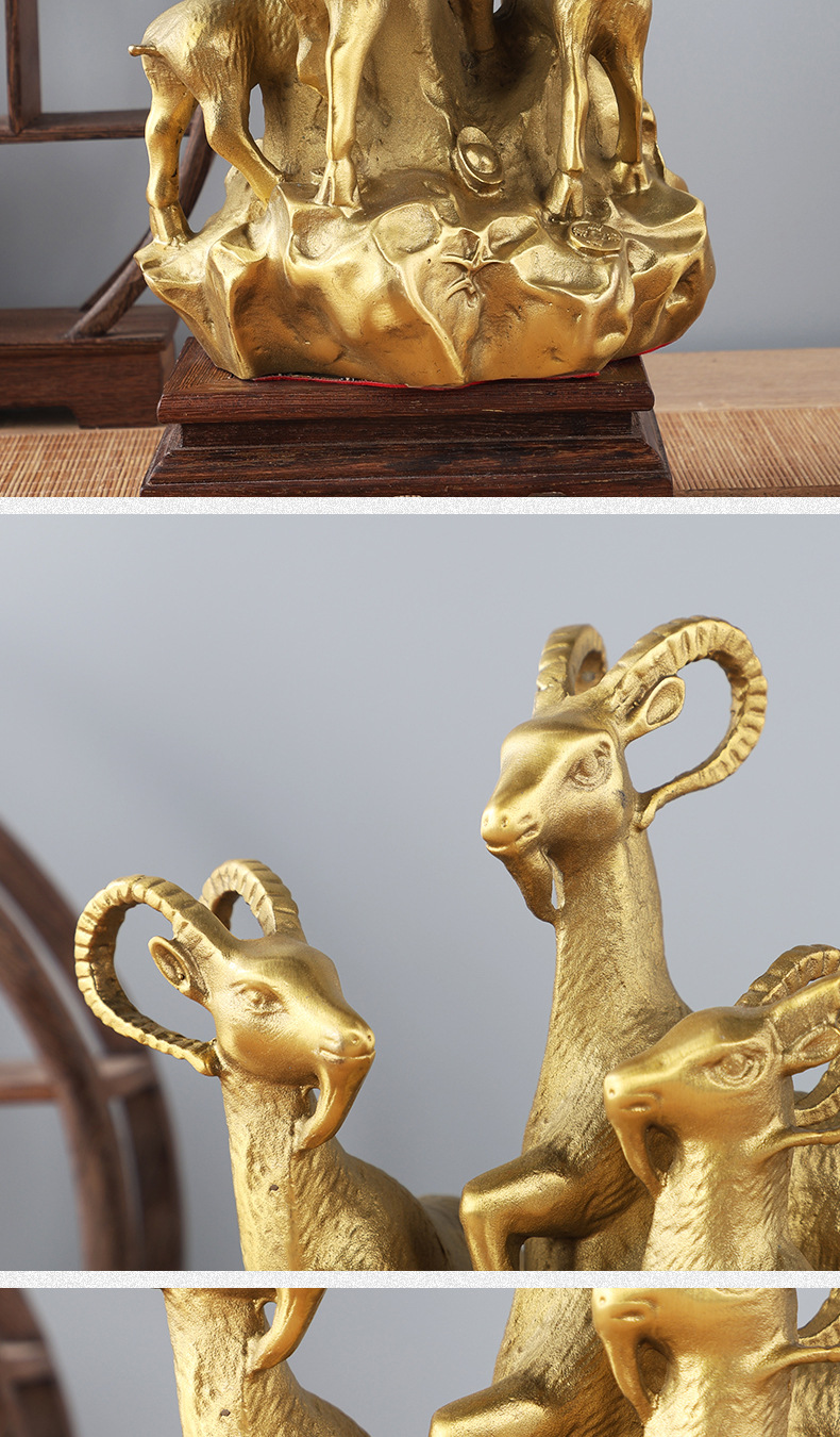 真鍮羊金羊装飾品三羊開泰ホームオープニングギフト銅羊装飾品工芸品卸売