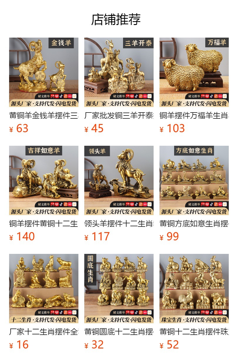 メーカー卸売銅三陽開泰装飾品銅羊干支羊銅装飾品三陽開泰工芸品