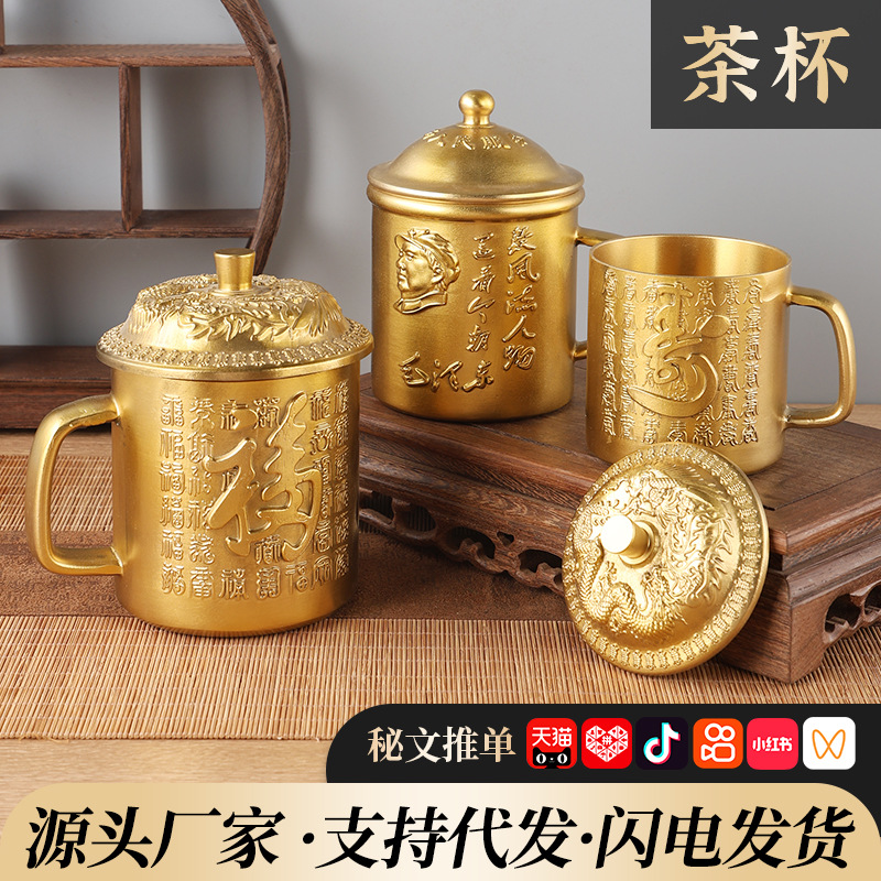 真鍮ウォーターカップティーカップオフィスホームデスクトップクリエイティブコレクション銅ギフト小さな装飾品金属工芸品
