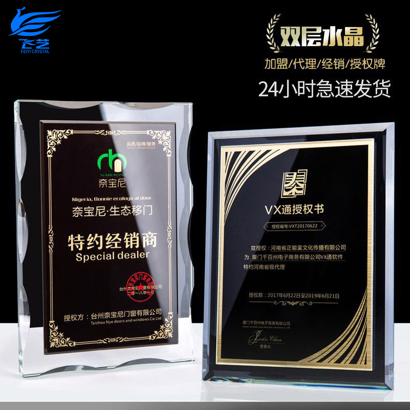 高端金属铝合金奖牌授权牌牌匾定制加盟代理商会员牌先进集体牌匾