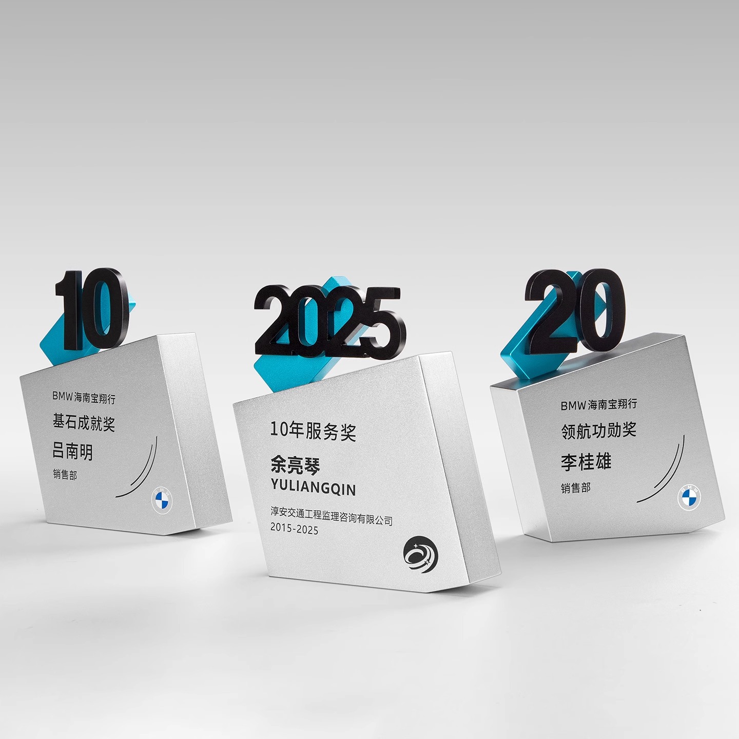 トロフィーカスタマイズされたハイエンド金属アルミニウム合金デジタル記念日年次総会賞優秀な従業員トロフィーカスタマイズ