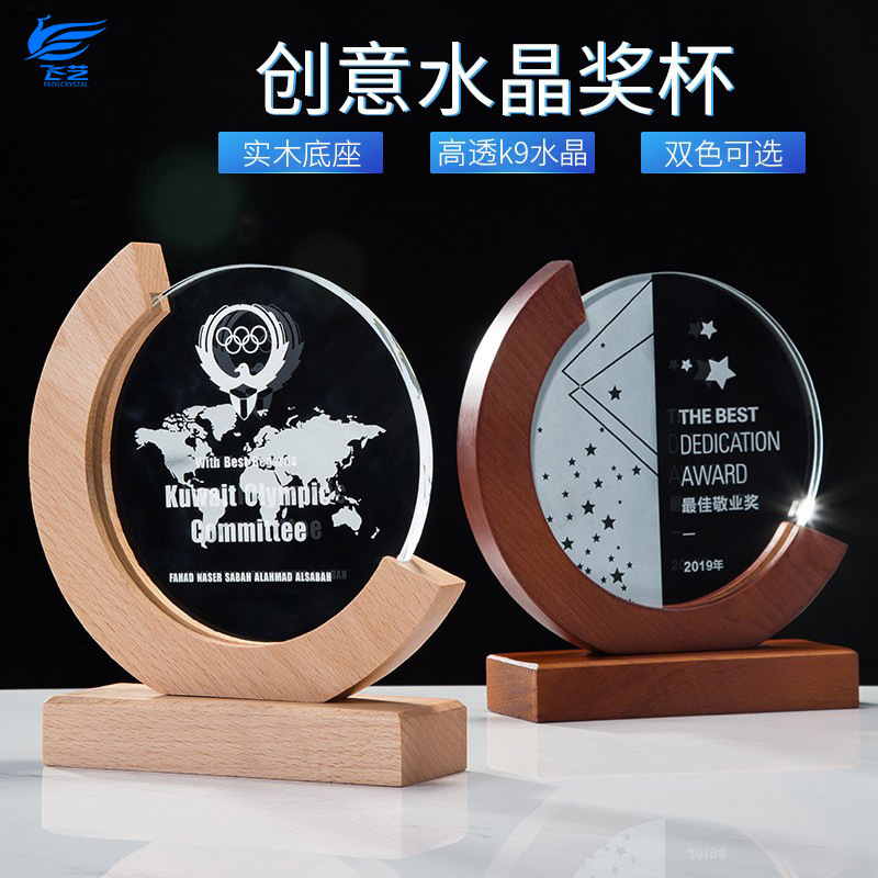 創意水晶トロフィーカスタマイズ実木ベース木製トロフィー授権牌カスタマイズ年会学校授賞記念品
