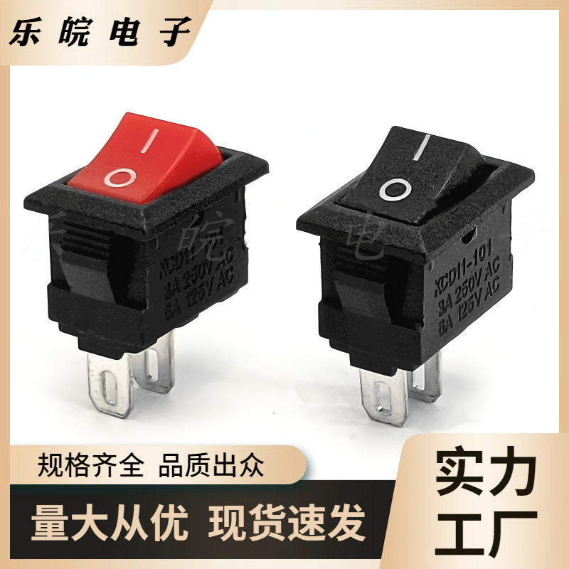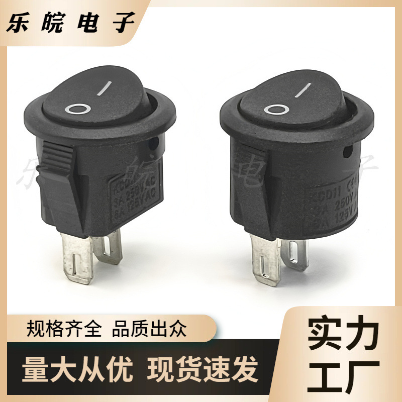 船型スイッチ、開口部15mm、小型丸型、黒色、2ピン2段階、KCD11丸型2ピン2段階電源スイッチ