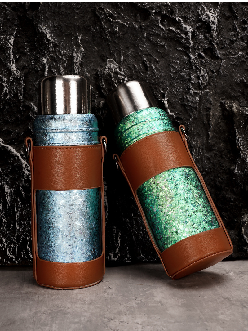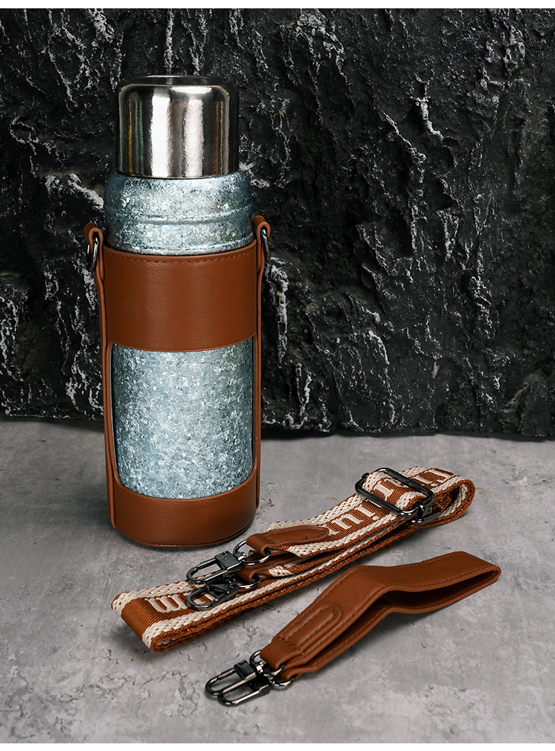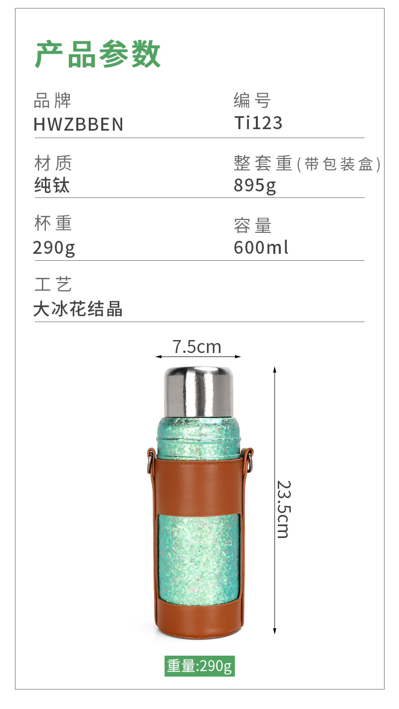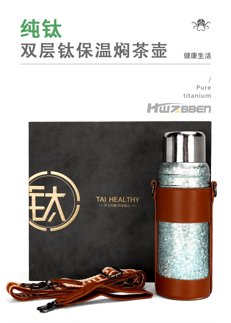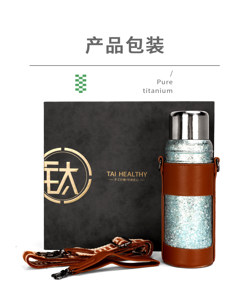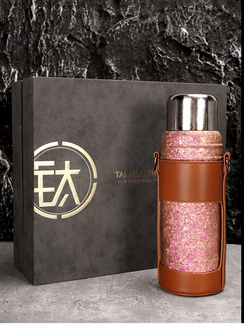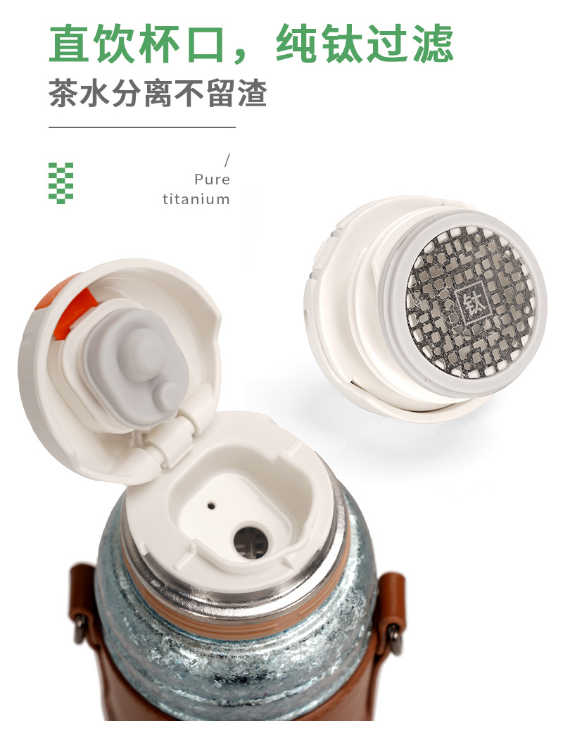 カスタマイズされた卸売純チタン断熱シチューティーポット二層大容量 600 ミリリットルアウトドアスポーツポータブルストラップウォーターカップ