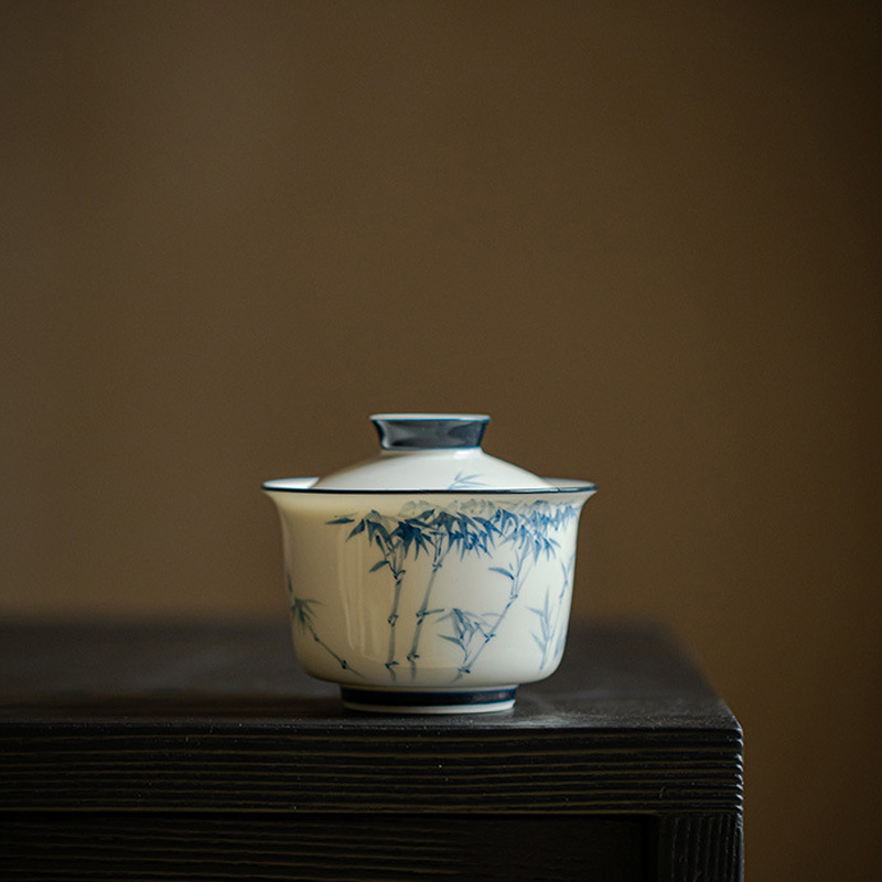 玉泥陶磁器の純粋な手描きの二才は碗の青と花の釉薬をかぶせて竹の工夫をします。