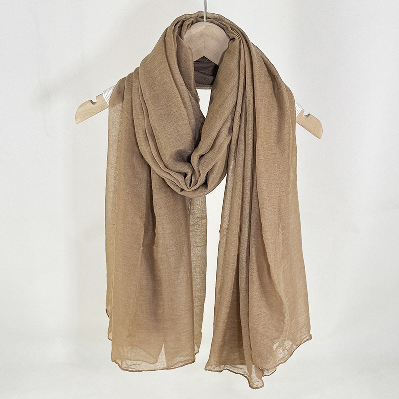 外国貿易の春秋森系の文芸のマフラーの女性はしわの純色の腰の果実の花を合わせて薄い金のしわの綿の麻のマフラーをつなぎ合わせます。