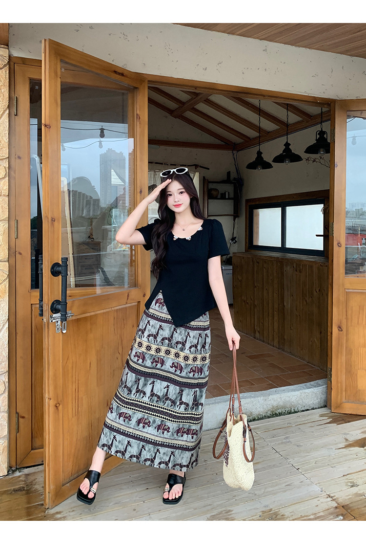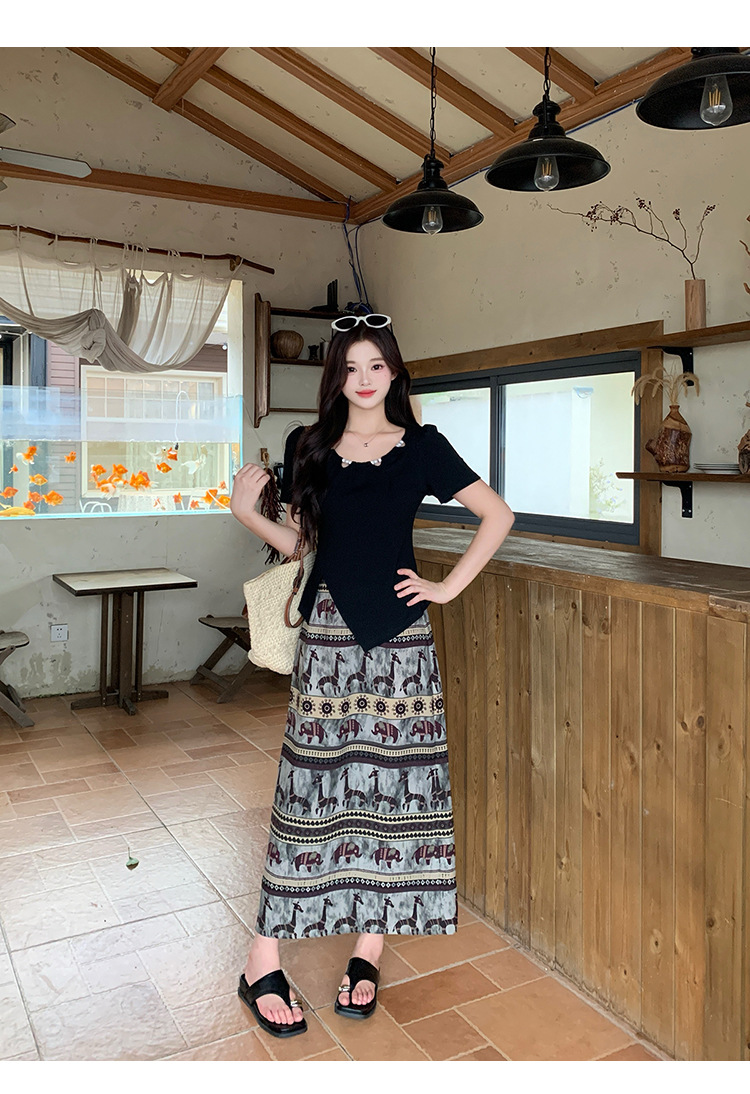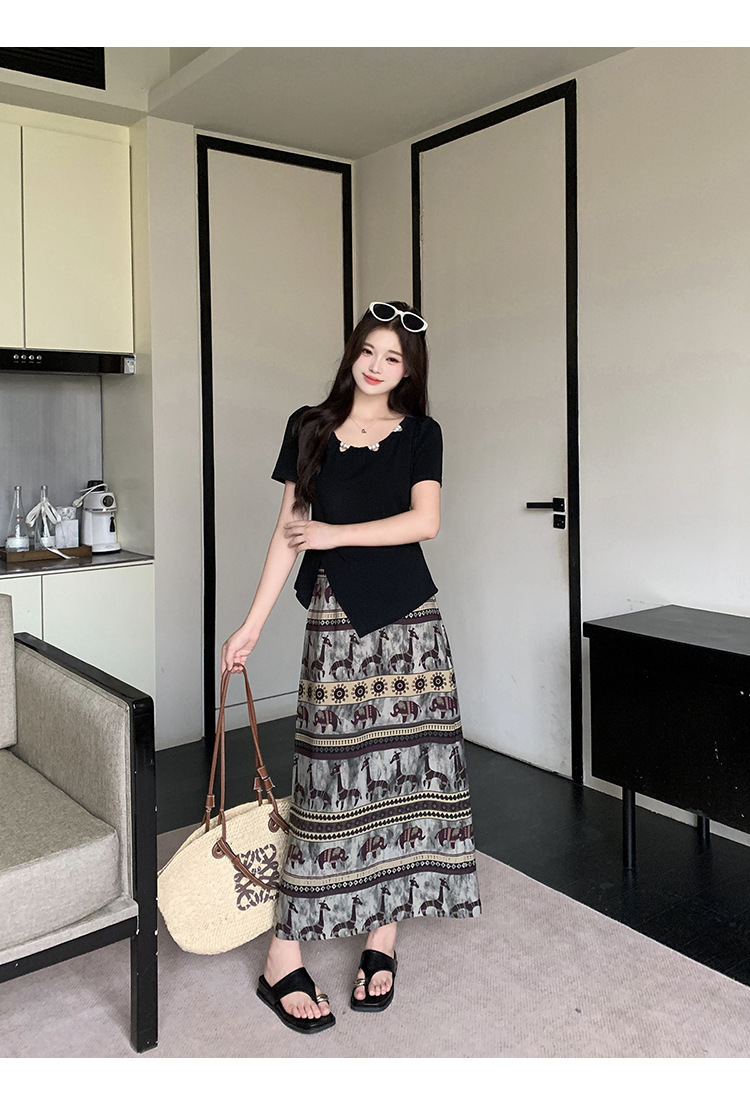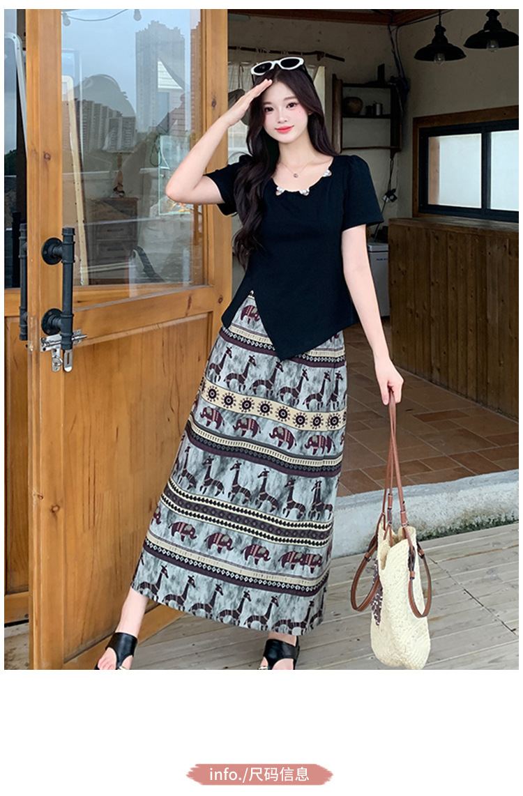 2025 夏の新スタイルファット mm 大きいサイズの女性のカジュアル半袖トッププリントスカートスーツ