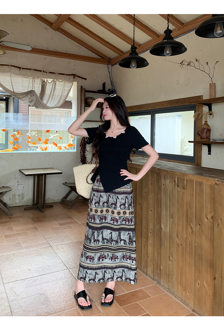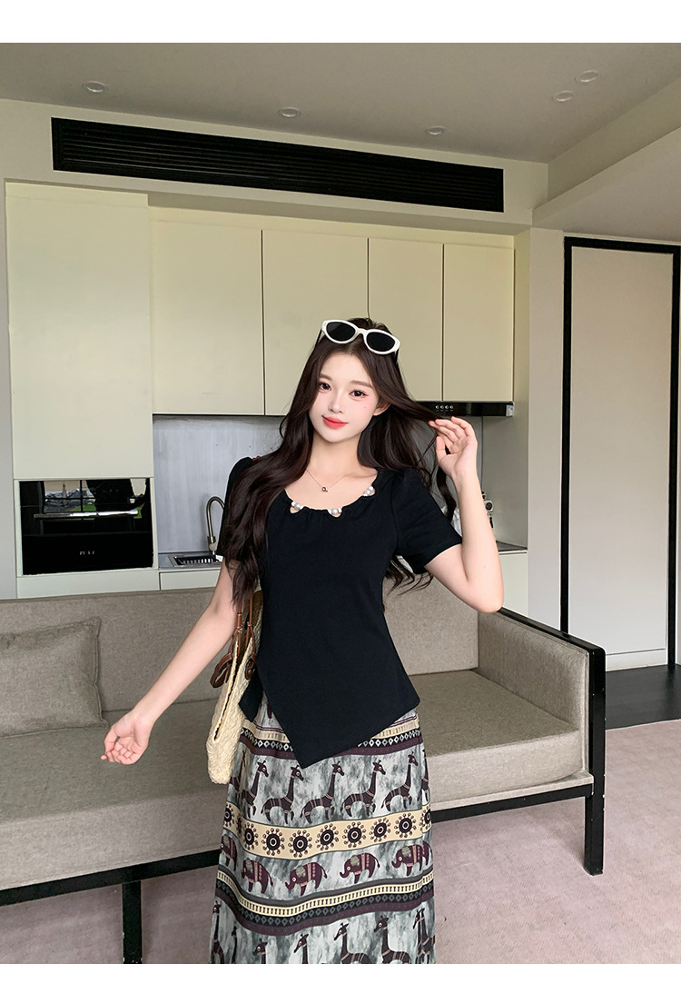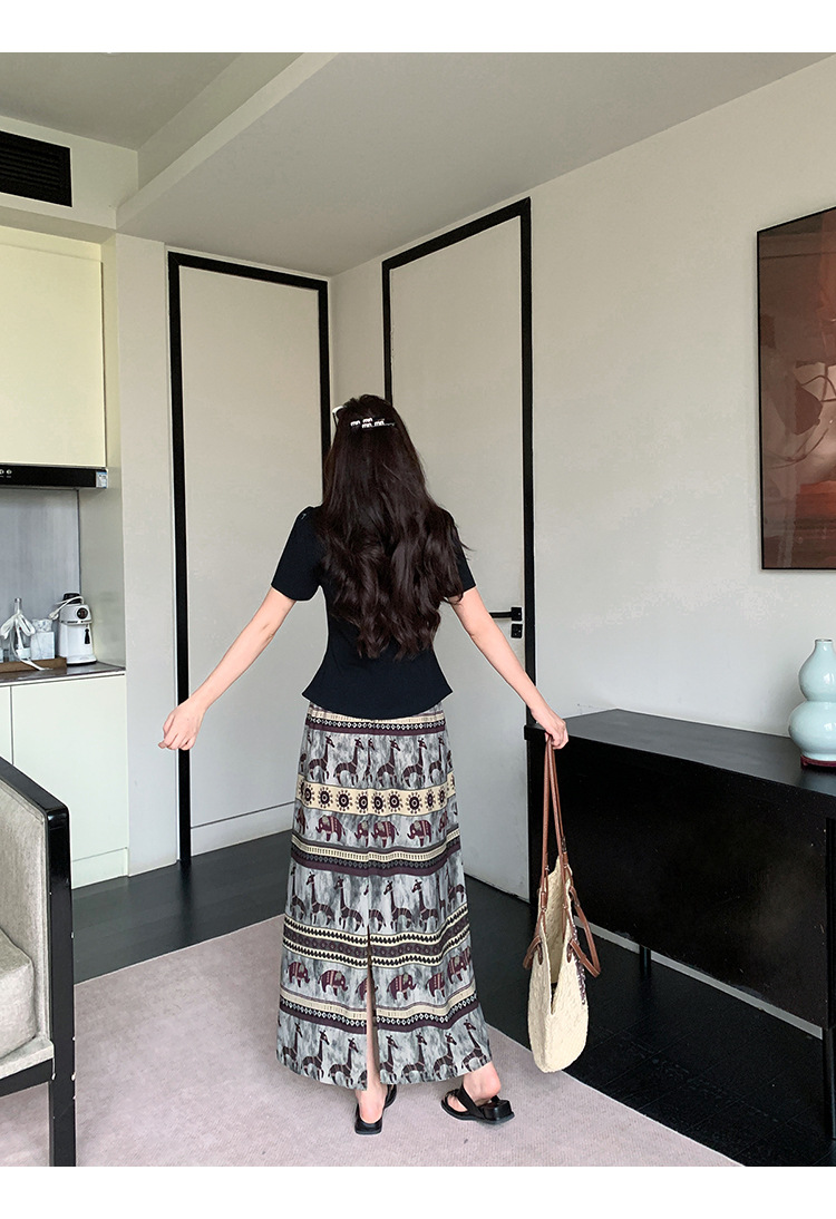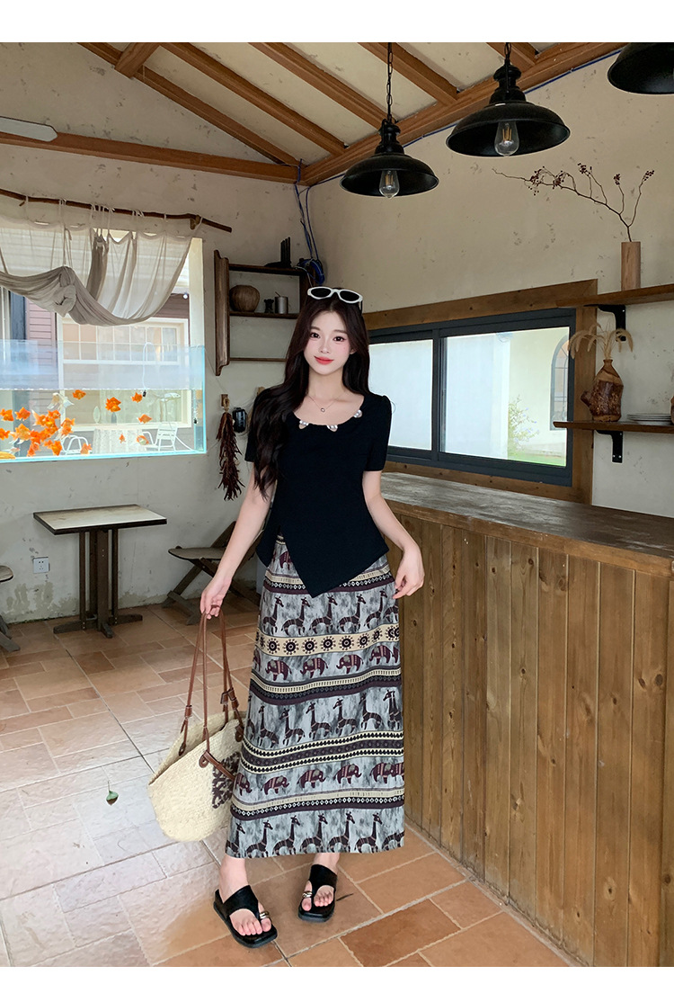 2025 夏の新スタイルファット mm 大きいサイズの女性のカジュアル半袖トッププリントスカートスーツ