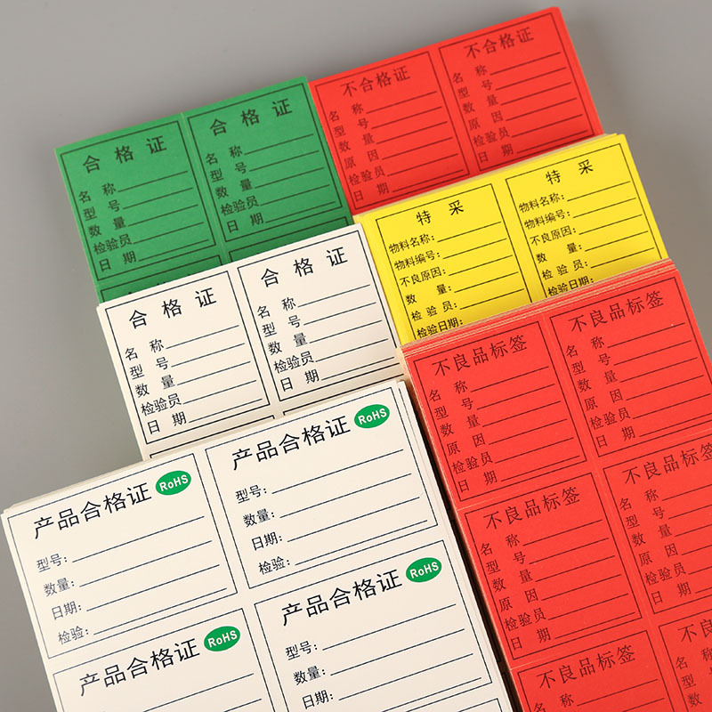 イエロー スペシャルコレクション 45*50 1パック(1000枚),赤不合格ラベル 45×50 1パック(1000枚),グリーン証明書 45*50 1パック(1000枚),白証明書 45×50 1パック(1000枚),赤不良品ラベル 45×50 1パック(1000枚)