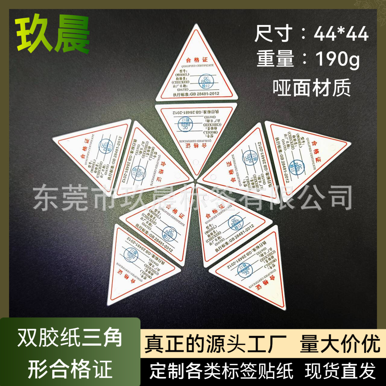 三角形製品検査証明書食品ジュエリー包装タグ保証カード粘着ラベル印刷工場