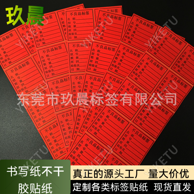 不良品标签贴纸 红色物料返修警示不干胶40*50mm1000贴不合格标签