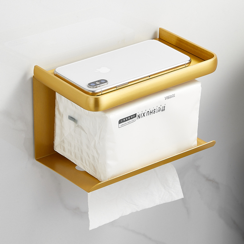 北欧風ブラッシュドゴールド宇宙アルミトイレットペーパーホルダー、穴あけ不要ペーパータオルホルダー、収納ラック、アメリカンスタイル