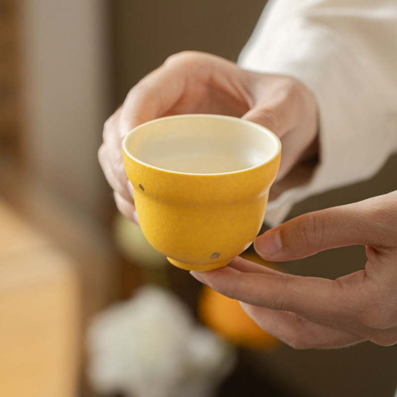 柠檬黄洒金陶瓷主人杯葫芦杯折腰杯品茗杯家用茶杯中式功夫茶具