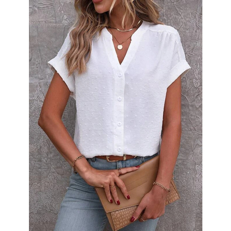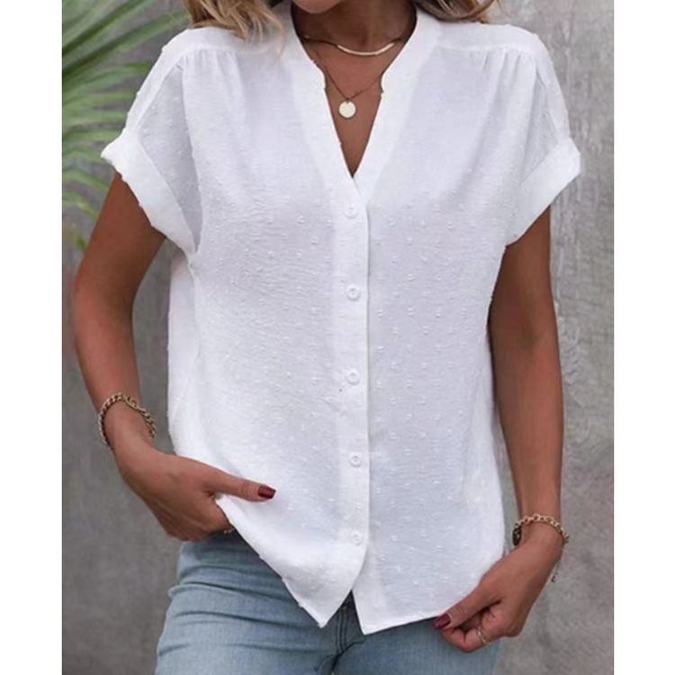 2025 夏の新スタイル AliExpress Amazon 独立したステーションヨーロッパとアメリカの無地ジャカード V ネックボタン女性のシャツ