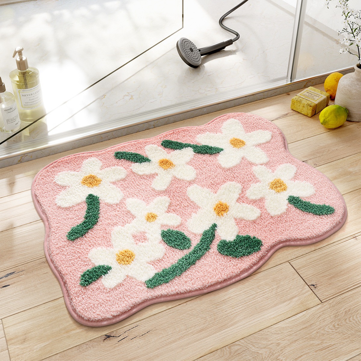 クロスボーダー新鮮な小さな花植毛カーペット寝室玄関ドアマット浴室ドア浴室吸水性滑り止めマット