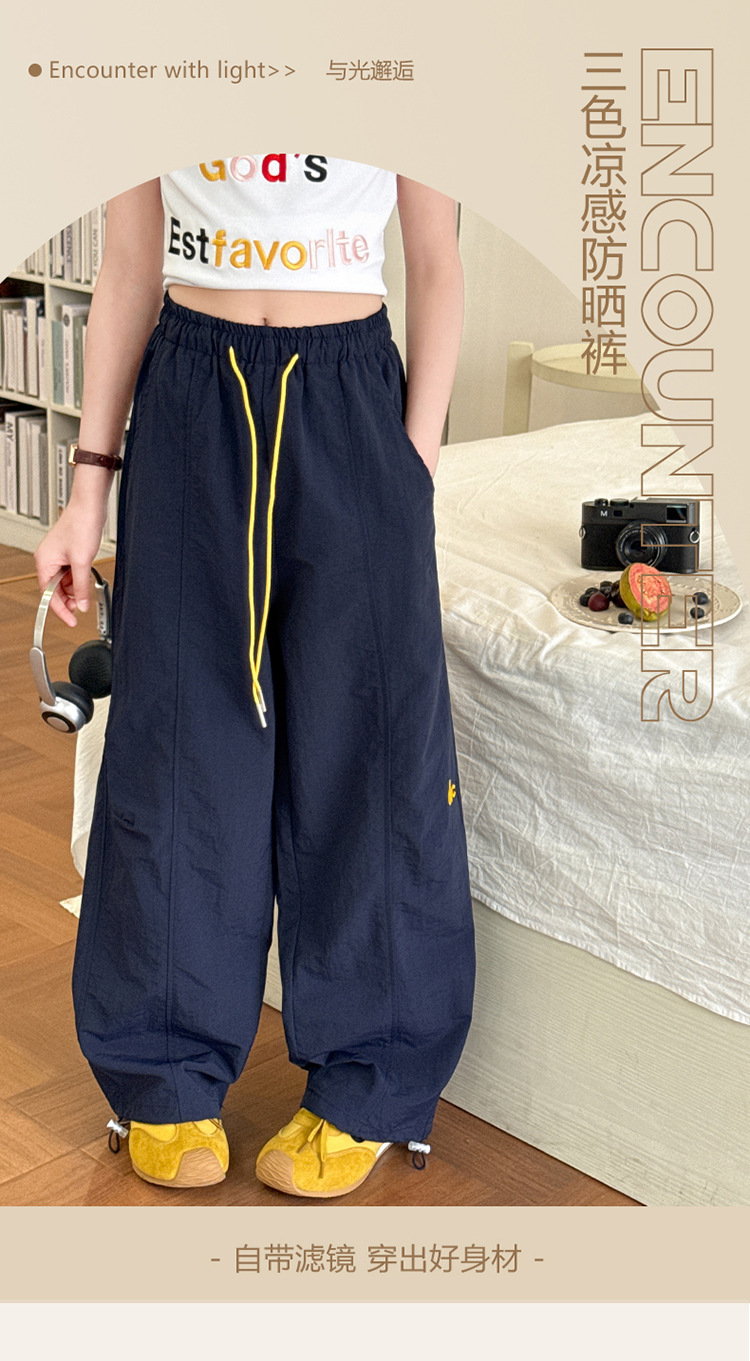 女の子のワイドパンツ夏の薄い氷糸防蚊パンツ子供カジュアルパンツ夏服子供の女の子の洋気ズボン