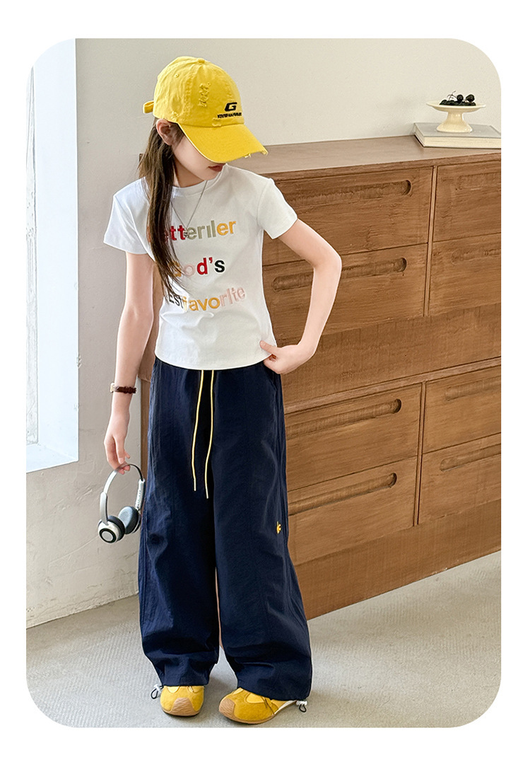 女の子の夏服の薄いタイプの工装のズボン2025新型の女の子の大きい子供の夏の洋風の広い足のズボンの子供の流行のカジュアルなズボン