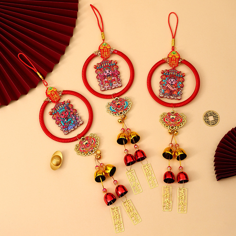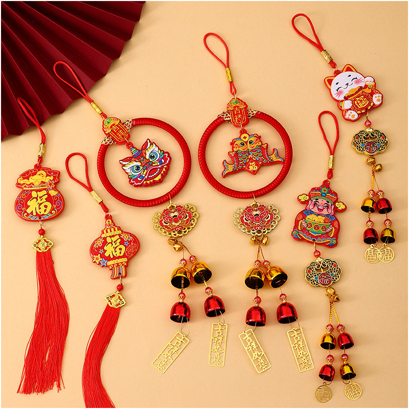 中国風招き猫樹脂ストラップ福袋流蘇おめでたいストラップ財神新年2025目が覚めたライオンの入り口に飾りがついている