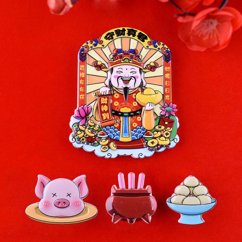 富の神の冷蔵庫は国潮の立体の漫画の創意の家の装飾の磁力を貼ってかまどの王の功品の磁気を貼って貼ります。