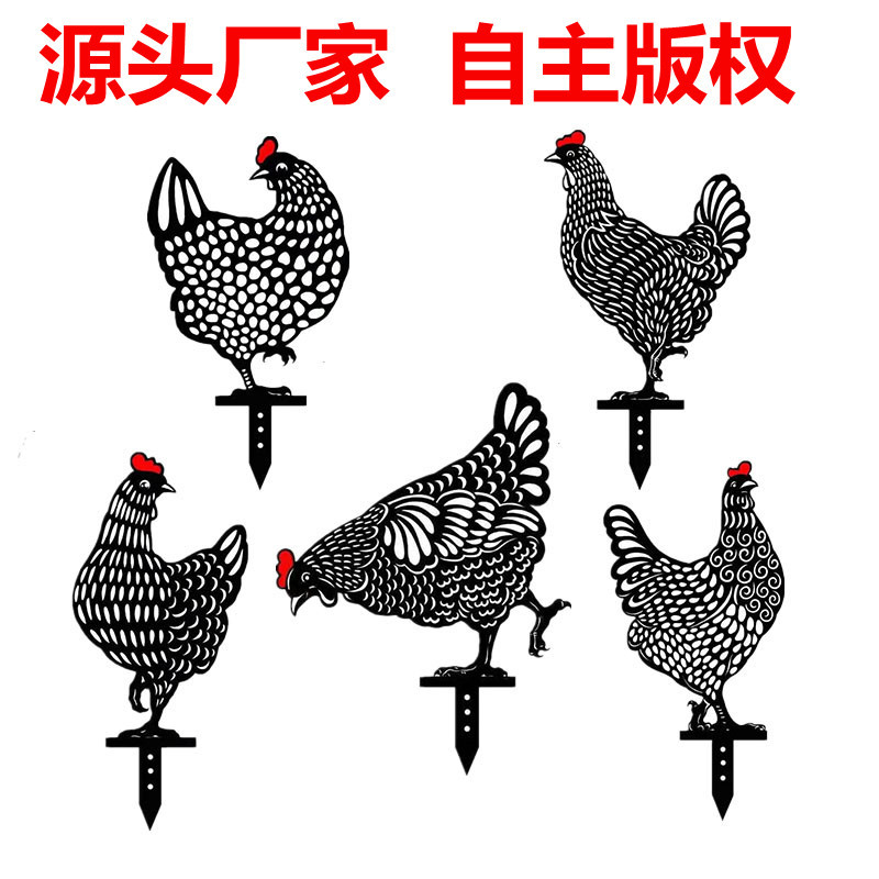 クロスボーダーガーデンオーナメントチキンヤードアートアクリル中空模擬装飾ガーデンブラックチキンインサート