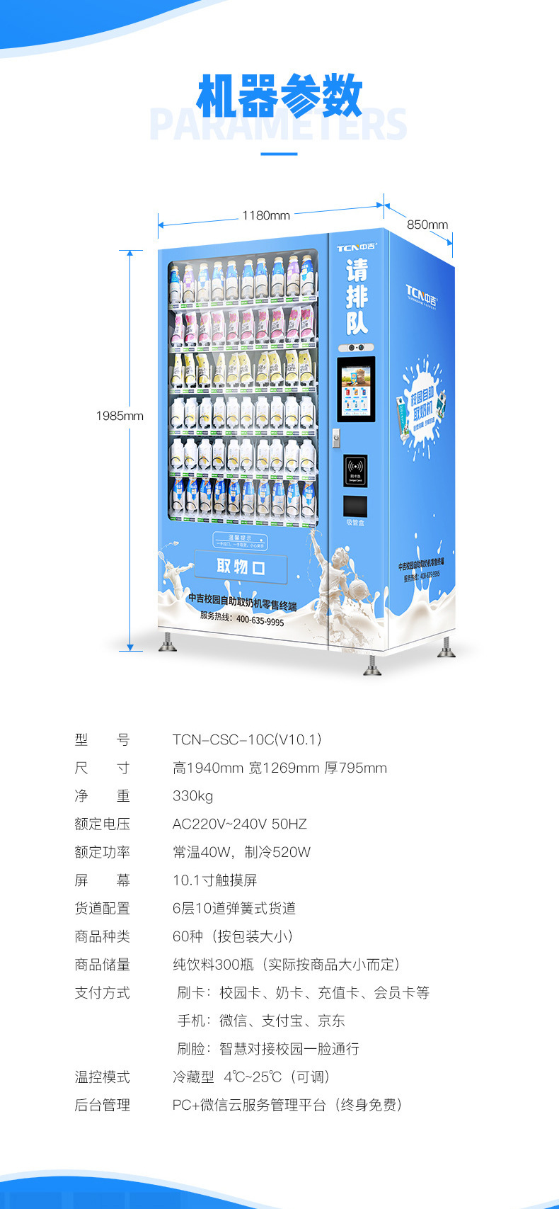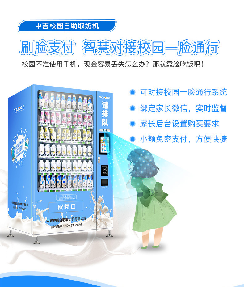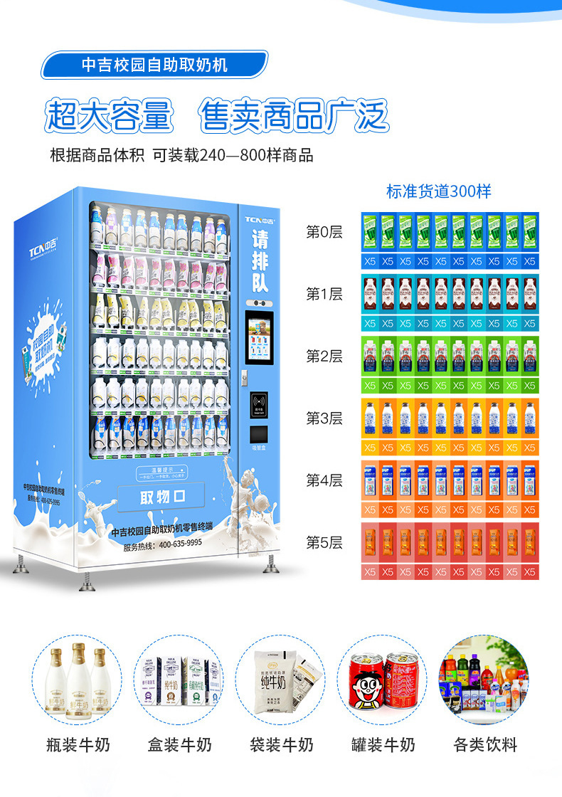 Zhongji キャンパス生乳無人自動販売機セルフサービスミルク自動販売機スナックと飲料自動販売機