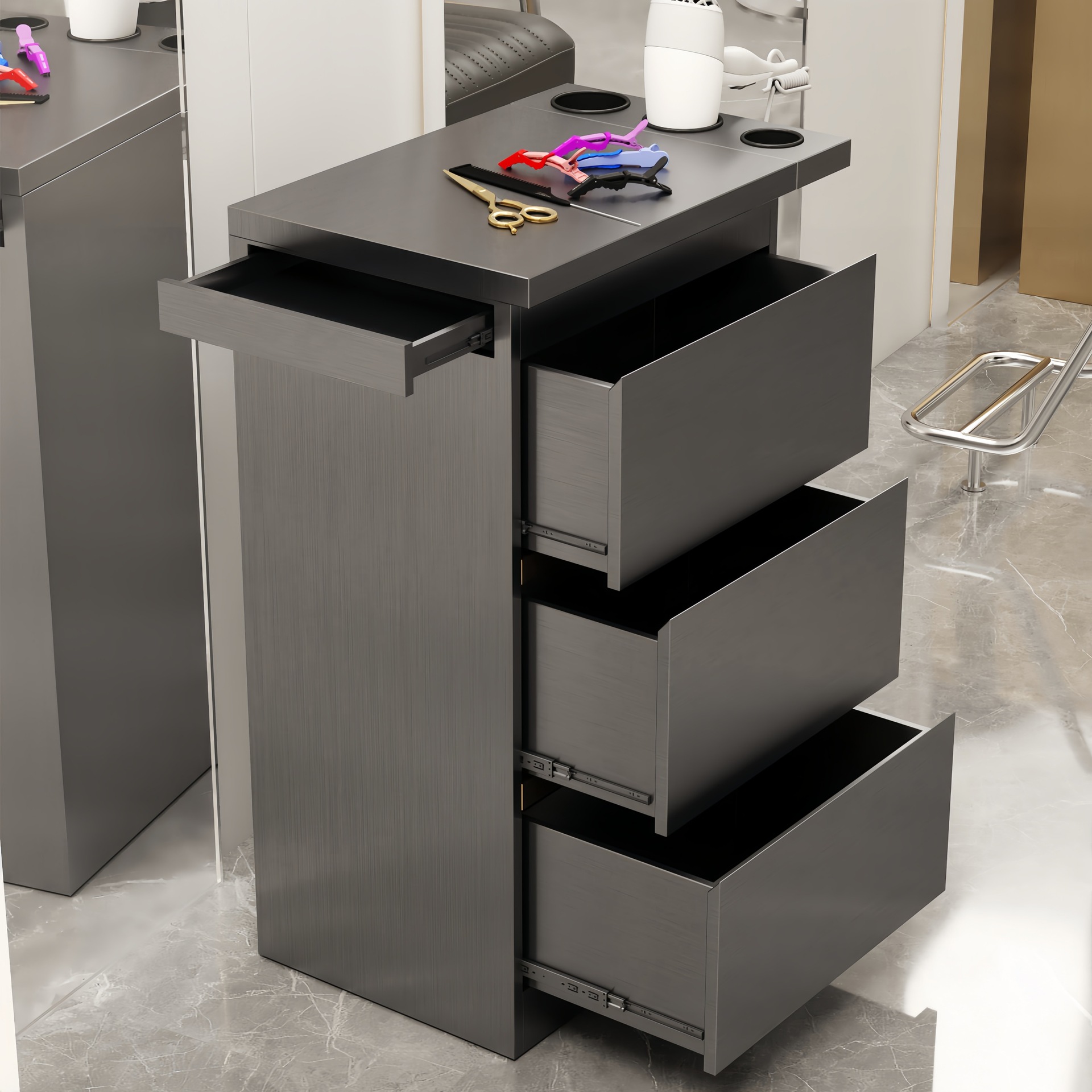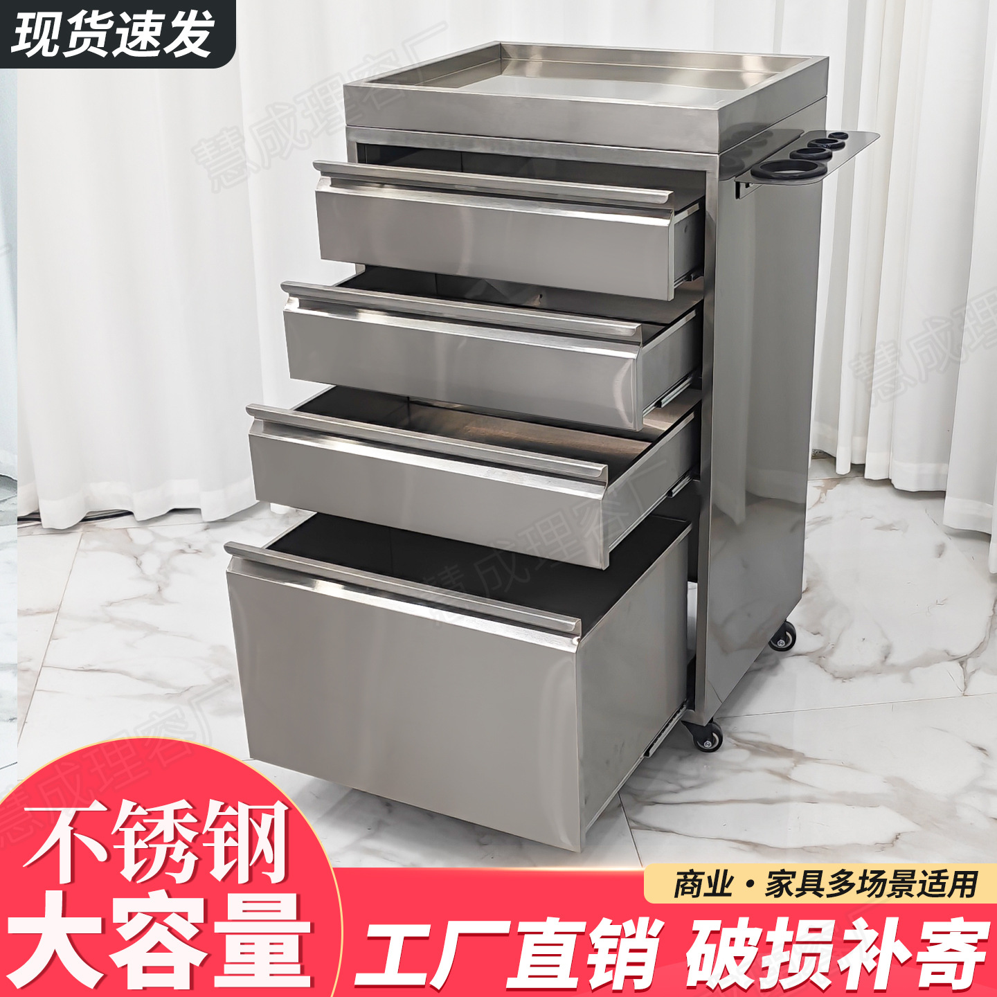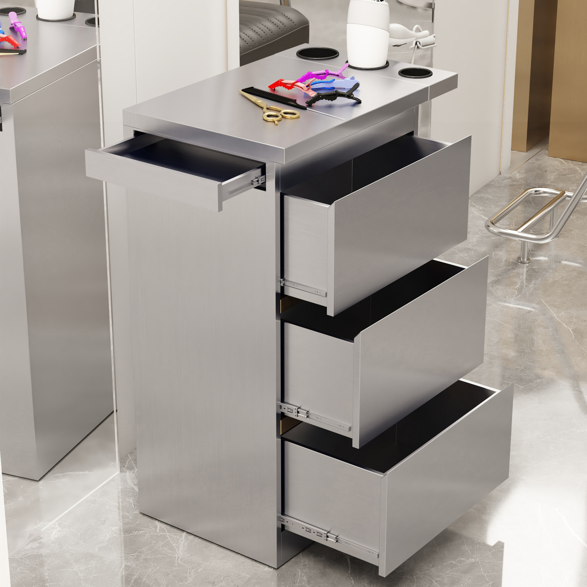 发廊不锈钢美发工具柜多抽屉收纳储物台理发店商用设备美发柜