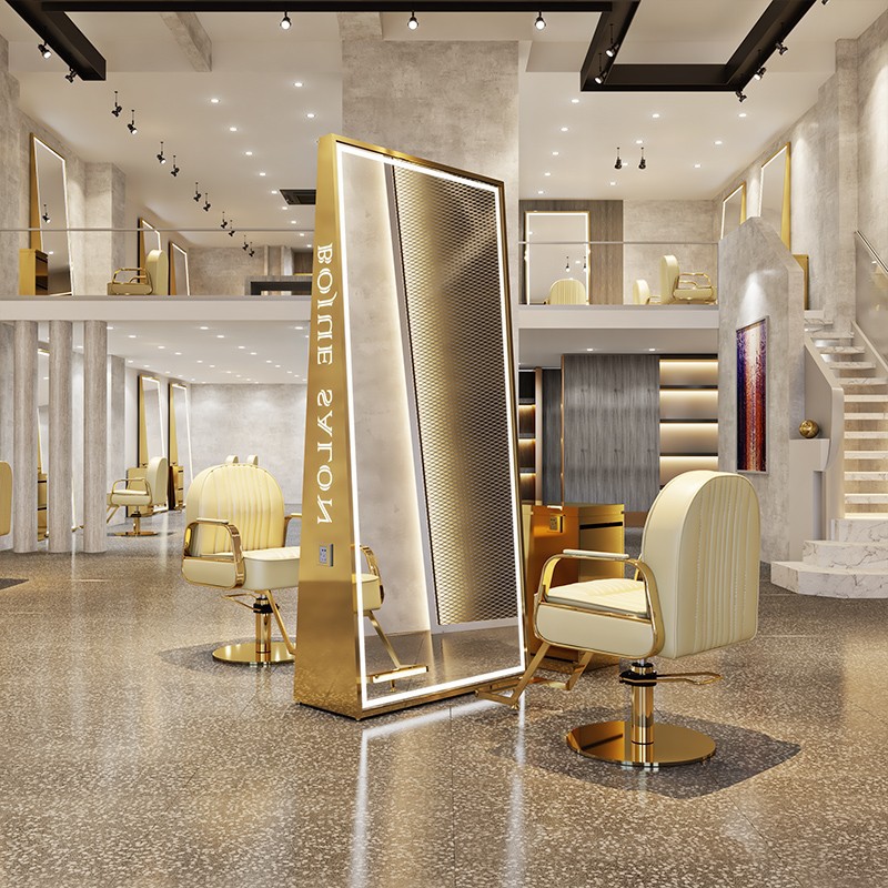 ネット有名人理髪店フロアミラーヘアサロン専用高級ヘアカット全身両面ミラーテーブル理髪ステンレス鋼ライト付き