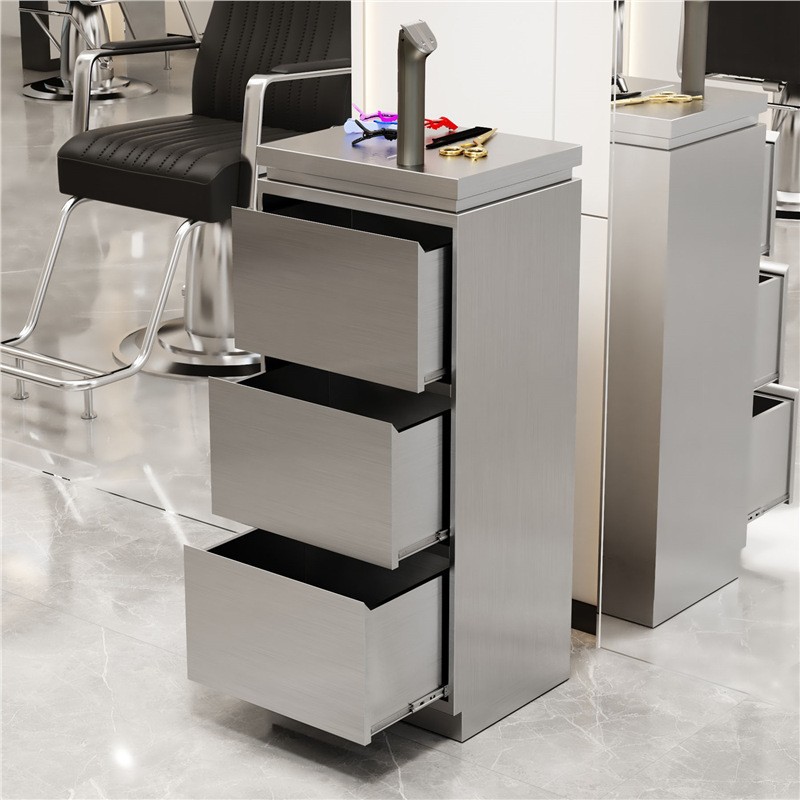 新しい理髪店のツールキャビネットのヘアサロン専用ステンレスのヘアカット作業キャビネットの収納物は簡単です。