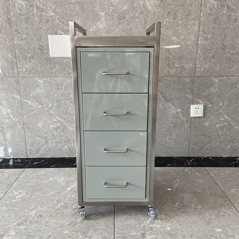 ステンレス鋼理髪店ツールキャビネット理髪キャビネットヘアサロン特別なツールテーブル収納ロッカー引き出しカート付き