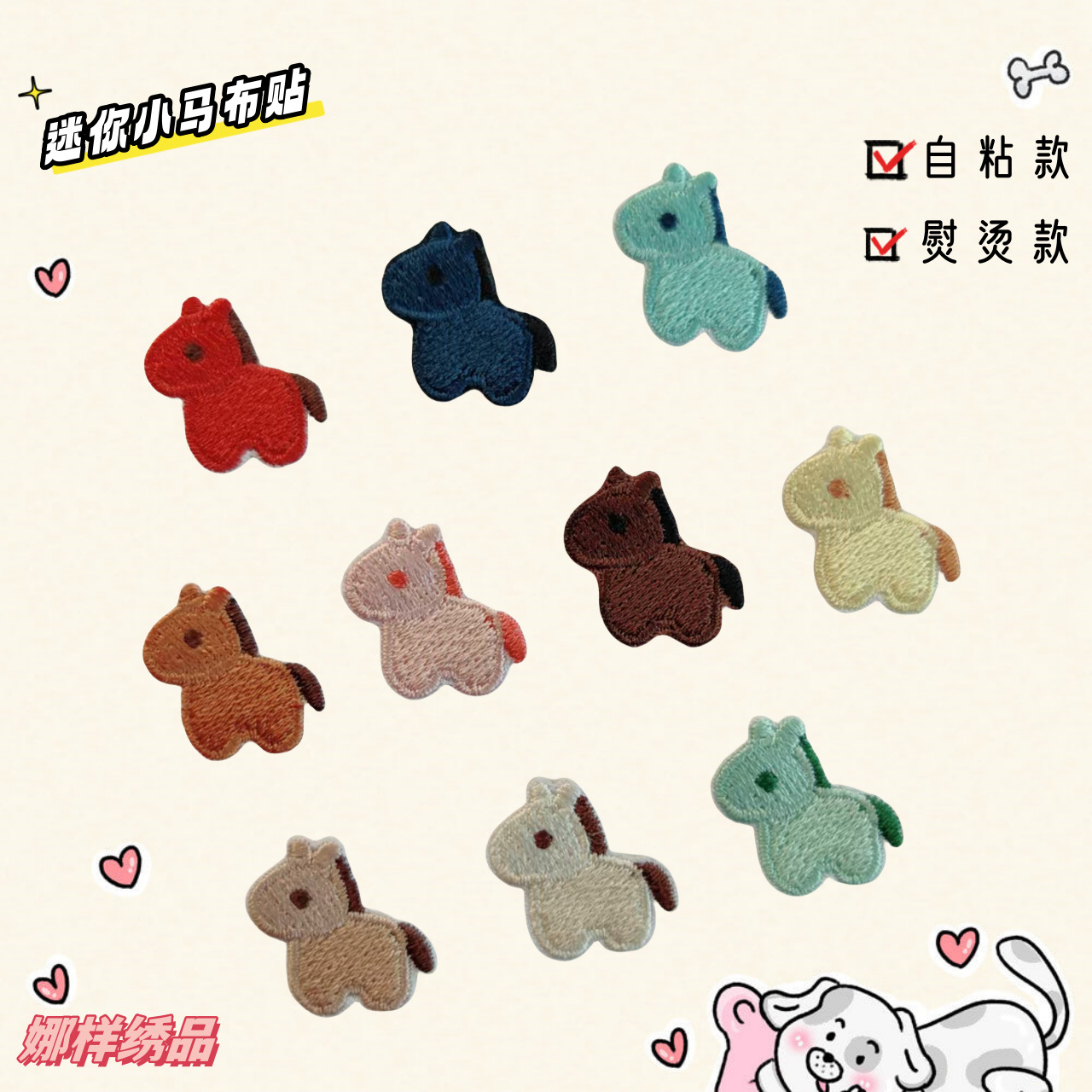 娜样迷你卡通小马刺绣布贴衣服补丁贴袜子装饰服装辅料熨烫自粘