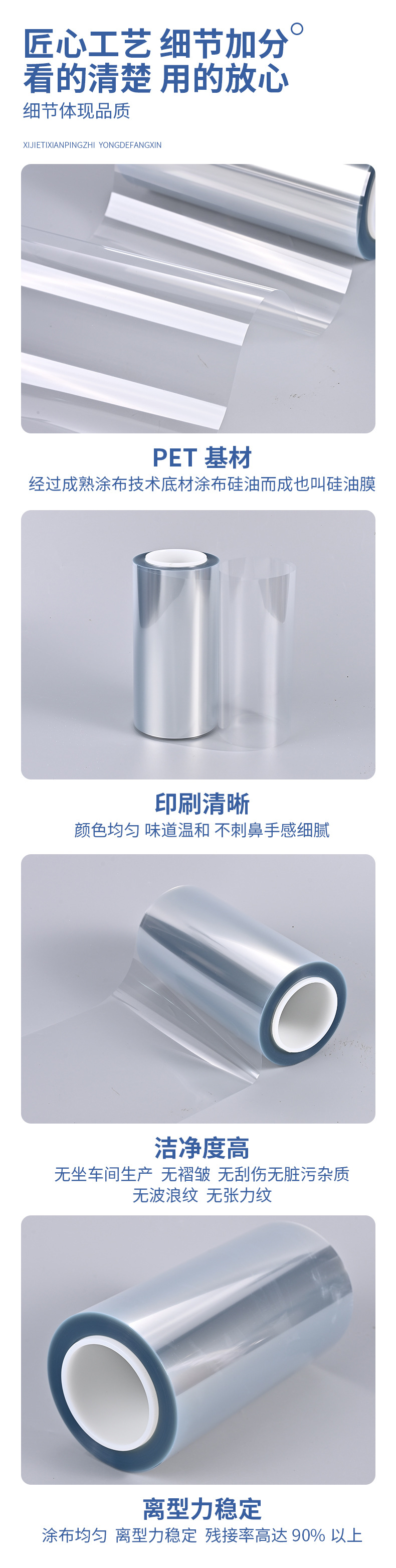 ペット透明離型フィルム超薄型片面離型 50u75u オプションのシリコーンオイルフィルムアンチスティックアイソレーション