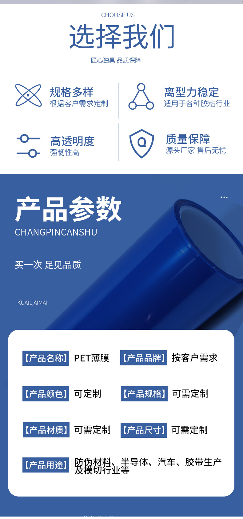 7.5C ブルーペットリリースフィルム印刷アルコール耐性 PET リリースフィルムシングルシリコン耐高温リリースフィルム卸売