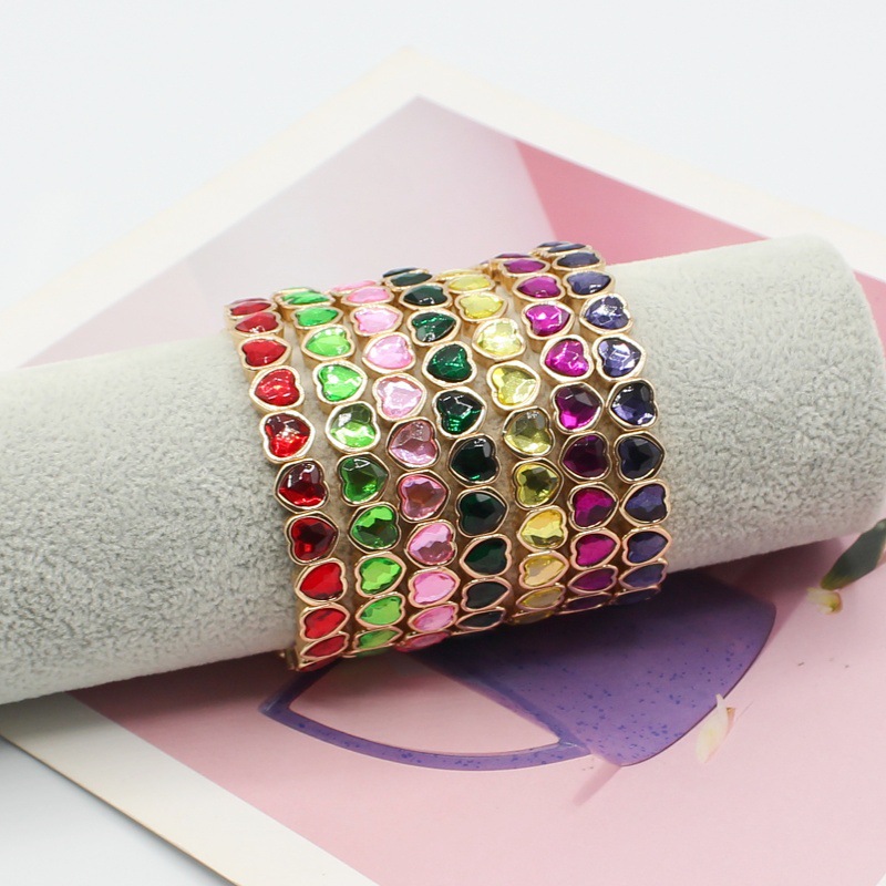 欧美跨境镶锆石心形爱心手镯手环女闪亮时尚轻奢高级搪瓷合金手饰
