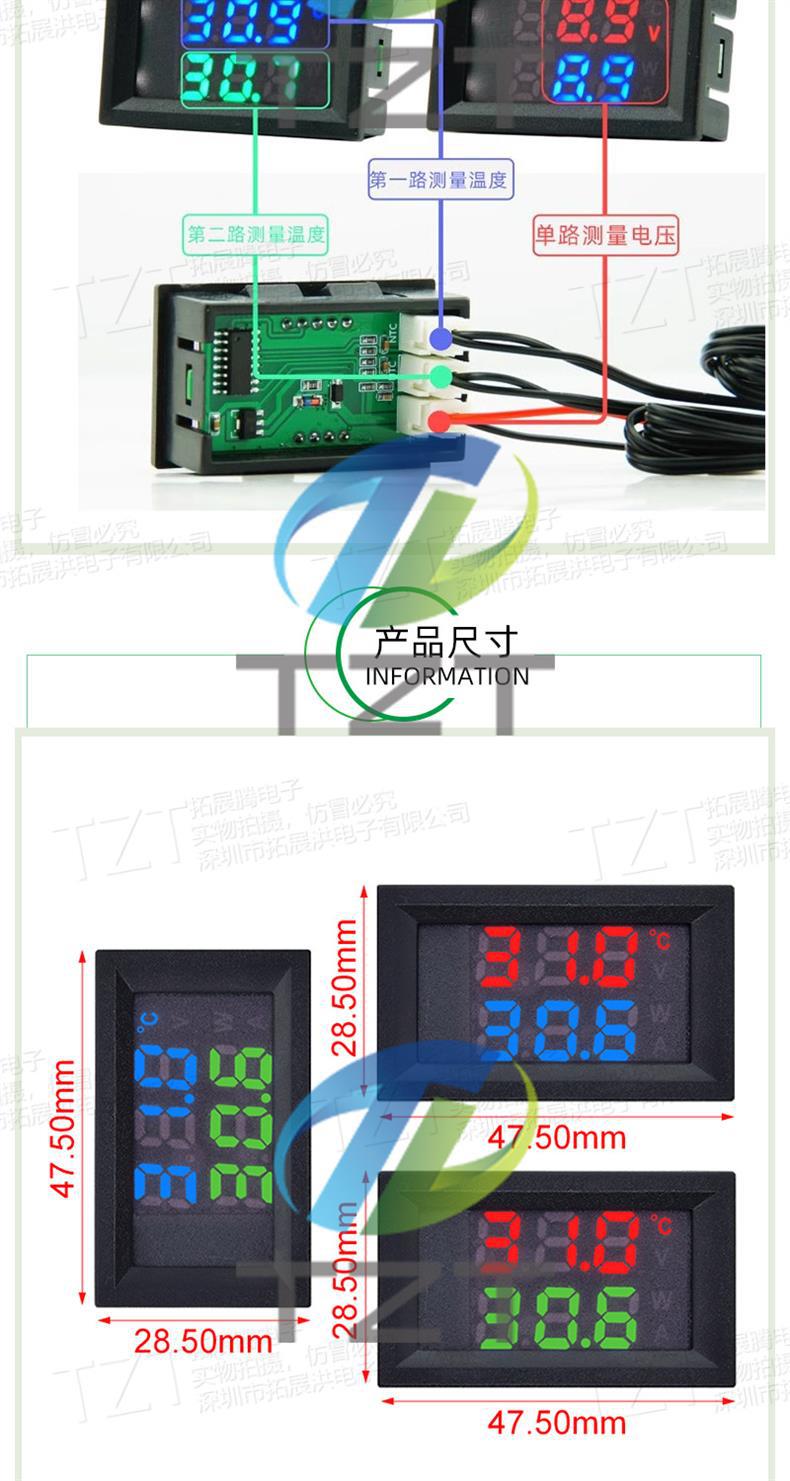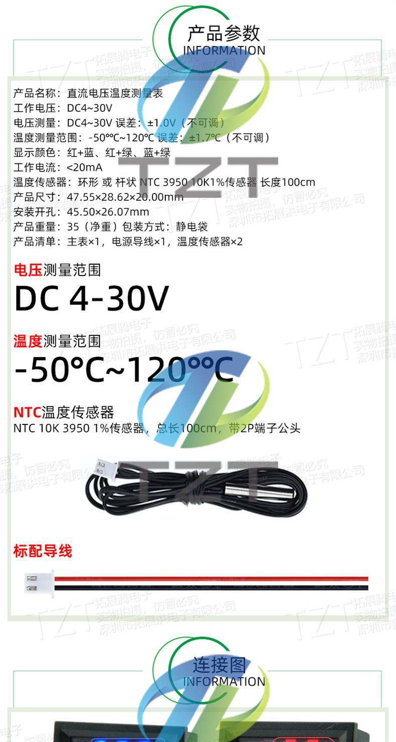 DC デュアルディスプレイ デュアル温度 + シングル電圧交互表示測定 4 ~ 30V 直接電源