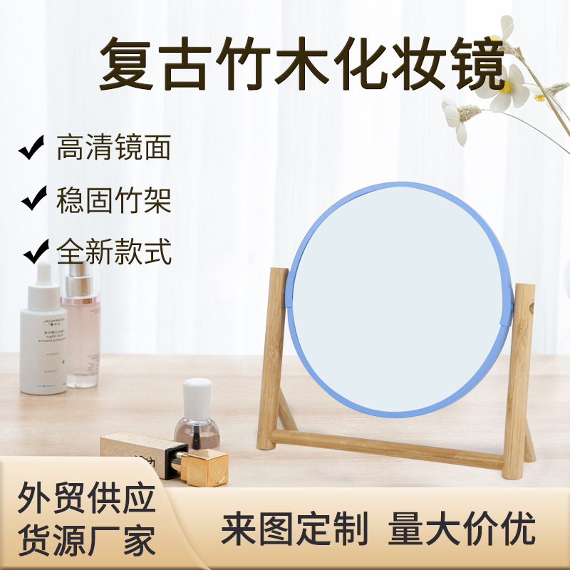 竹質デスクトップ両面拡大化粧鏡寮女子デスクトップ携帯学生簡易鏡ins家庭用ネット赤鏡