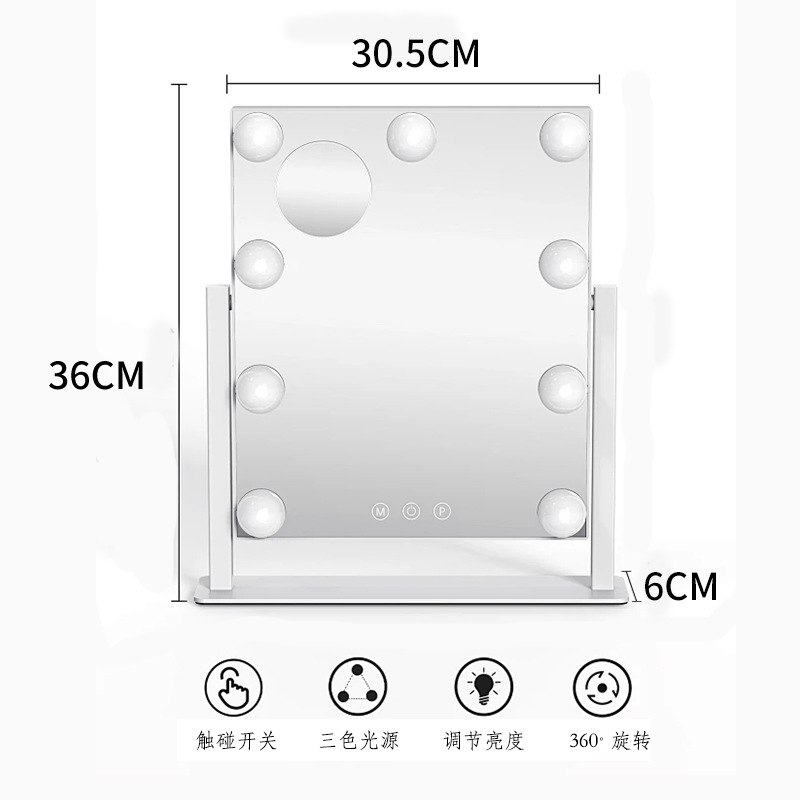 大号智能化妆镜led台式桌面带灯梳妆镜灯泡美妆镜梳妆台网红镜子
