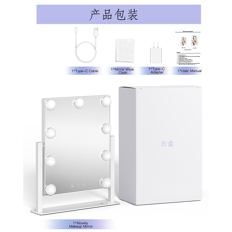 智能LED化妆镜大号台式好莱坞梳妆镜带灯泡美妆镜壁挂补光化妆镜