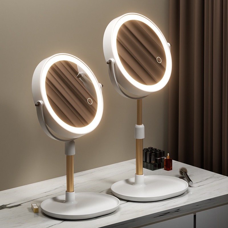 昇降高さ調節可能な両面ミラーフリップアップ高さ伸縮ミラーLEDデスクトップ拡大鏡ライト付き化粧鏡新製品