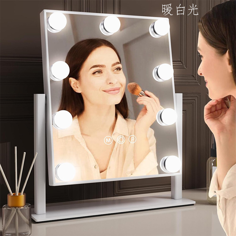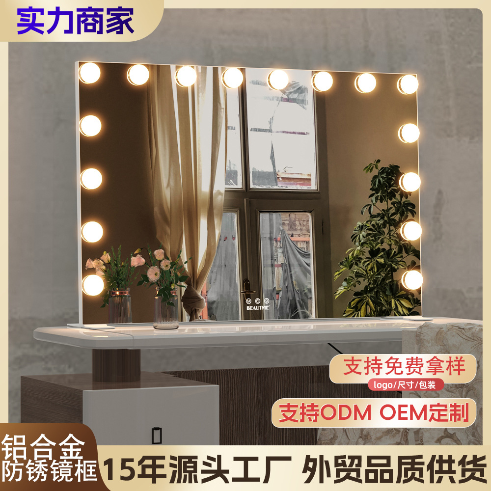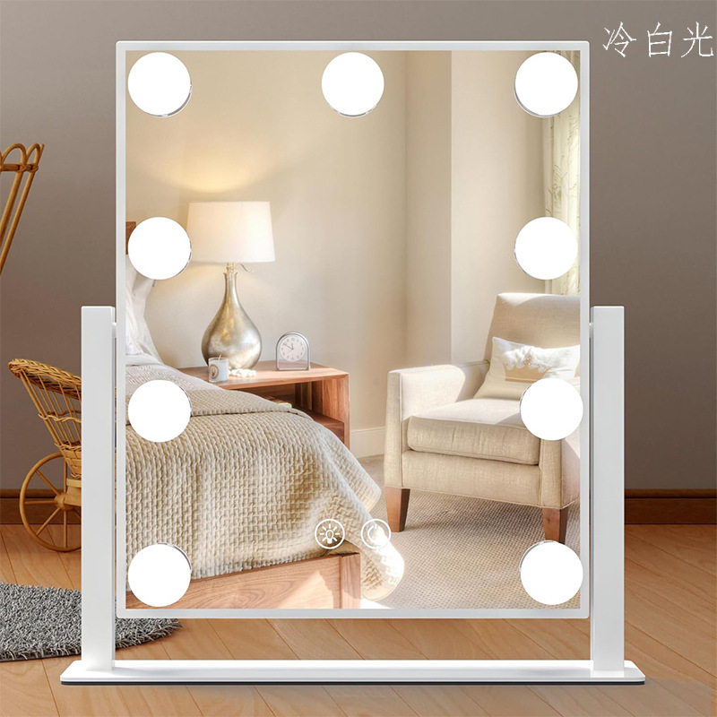 跨境化妆镜带灯好莱坞智能桌面台式梳妆镜化妆师专用补光超亮镜子
