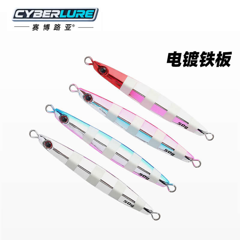 CYBERLURE电镀铁板船钓海钓岸抛鲅鱼马鲛假饵路亚夜光快抽铁板饵