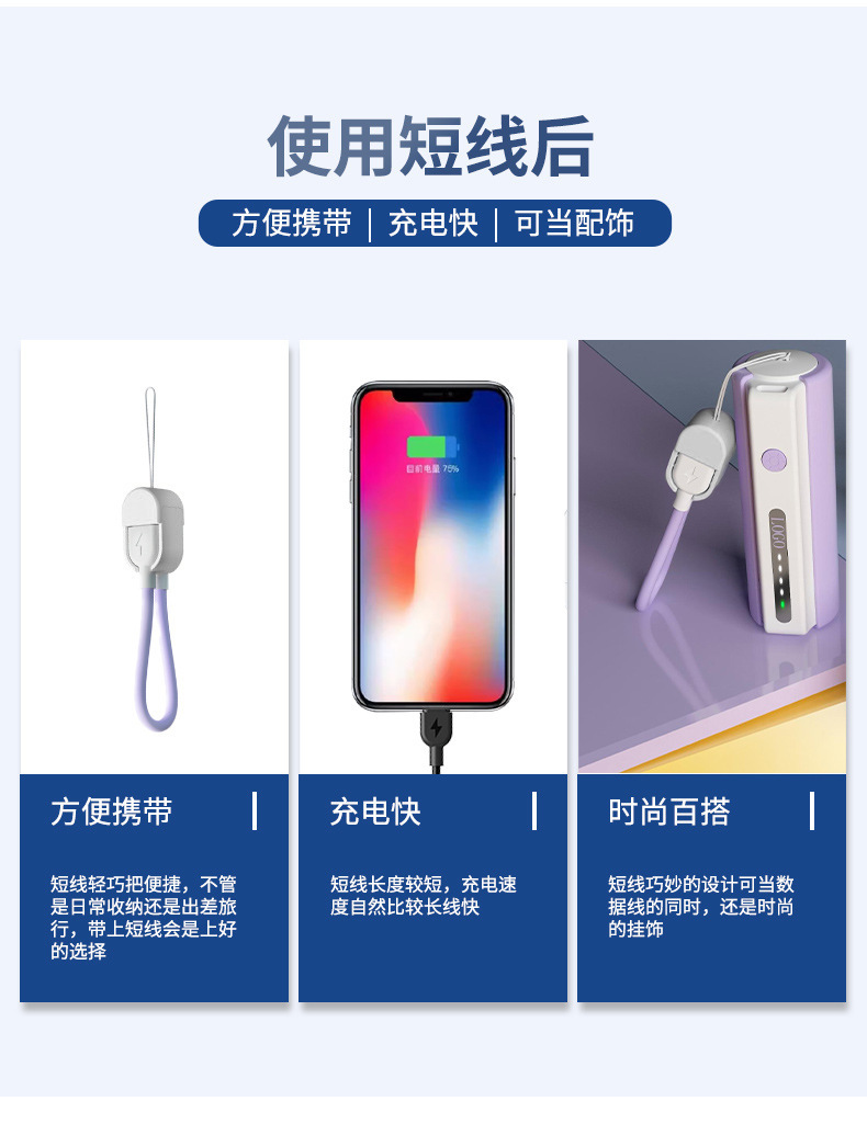 挂绳短款数据线便携充电宝伴侣充电线60W超级快充适用于苹果15-17