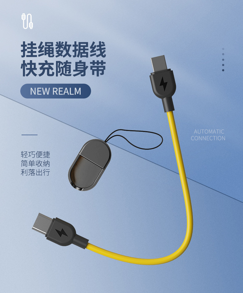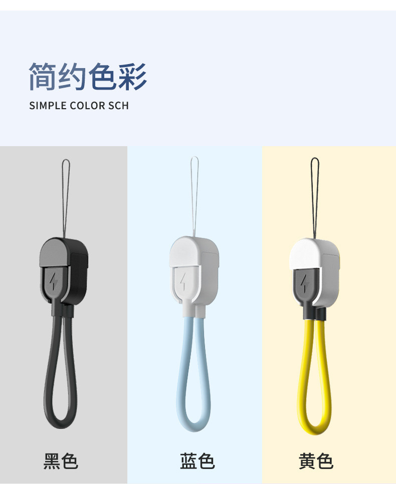 手机挂绳数据线适用苹果快充双c线充电宝钥匙扣充电线typec数据线