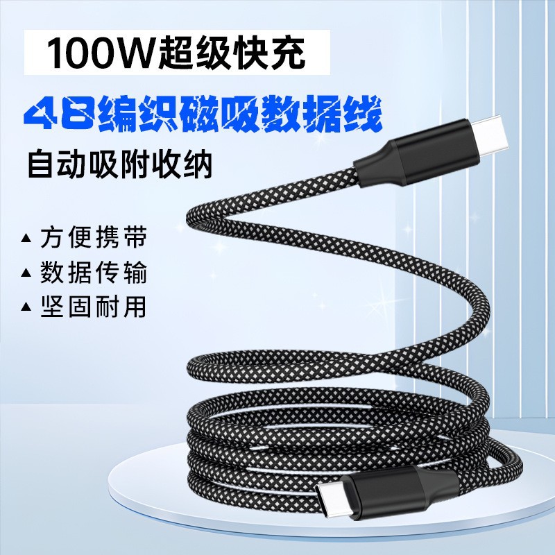 マジック磁気データケーブル Apple 15 Huawei type-c100W 充電ケーブルに適した 2 色の編組アルミニウム合金