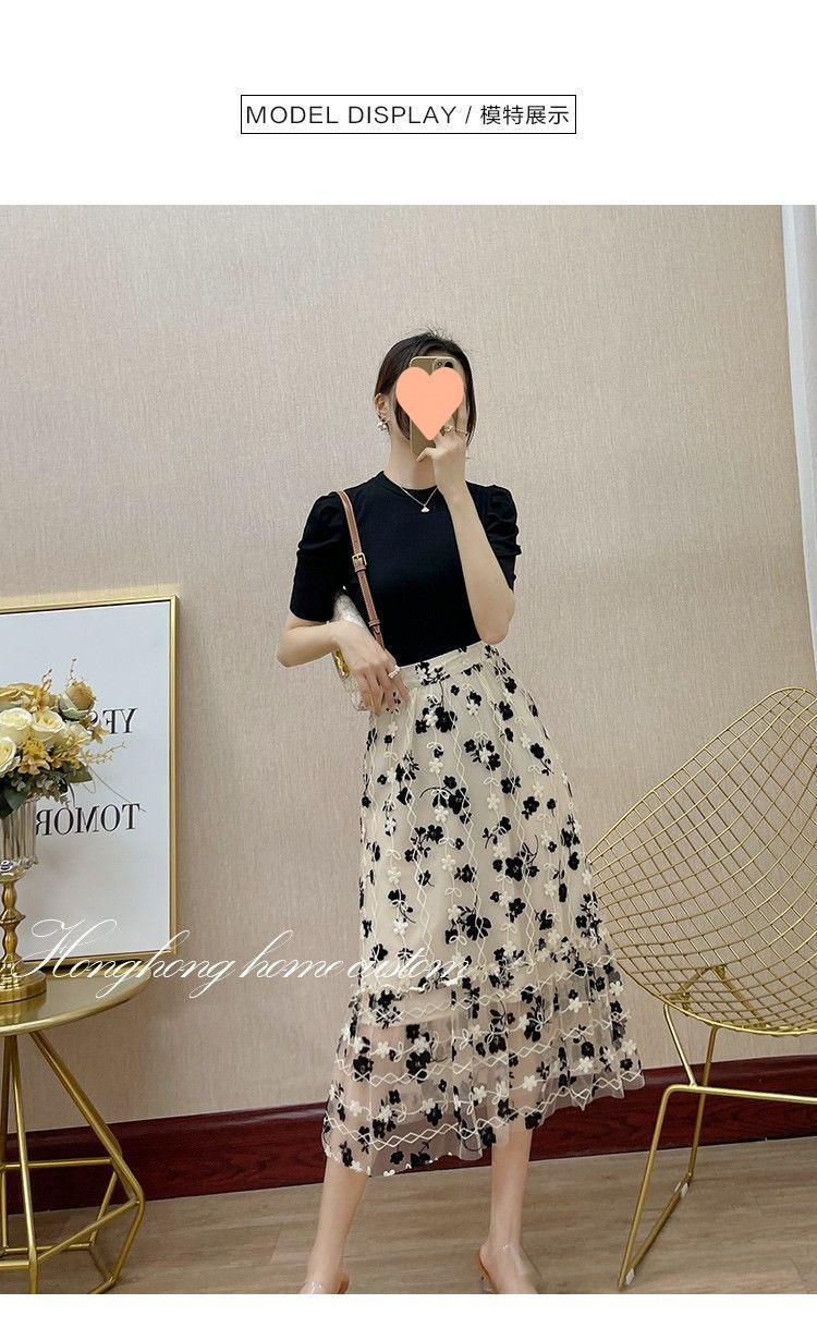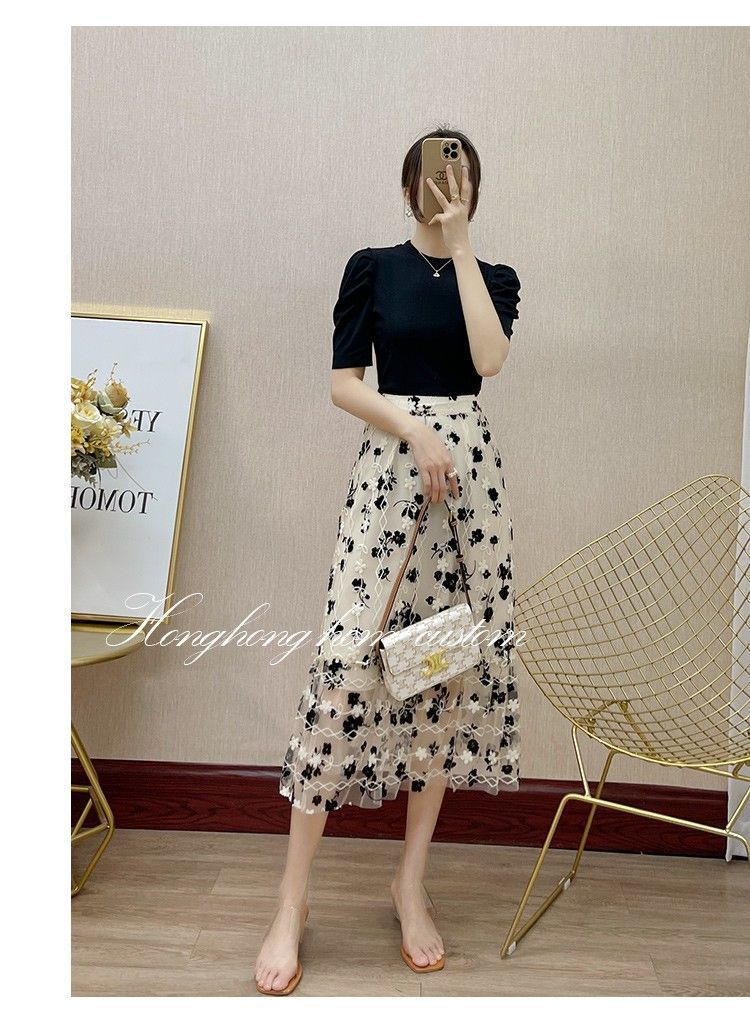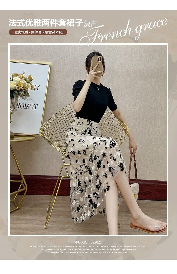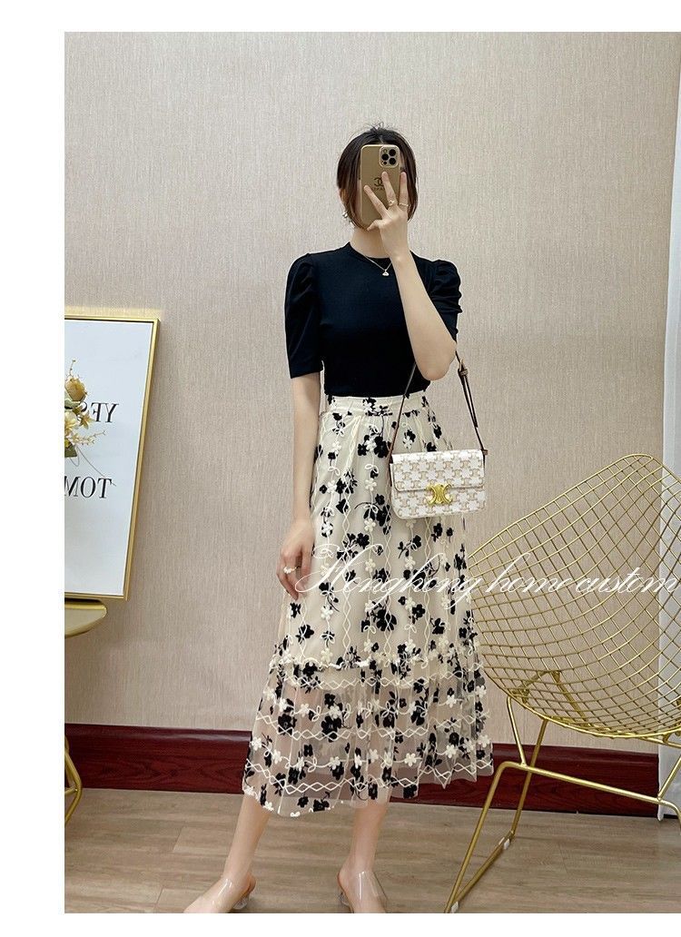新しい夏のスカート、気質トップス、刺繍入り花柄スカート、夏のハイウエストスカート、2点セット、人気スタイル