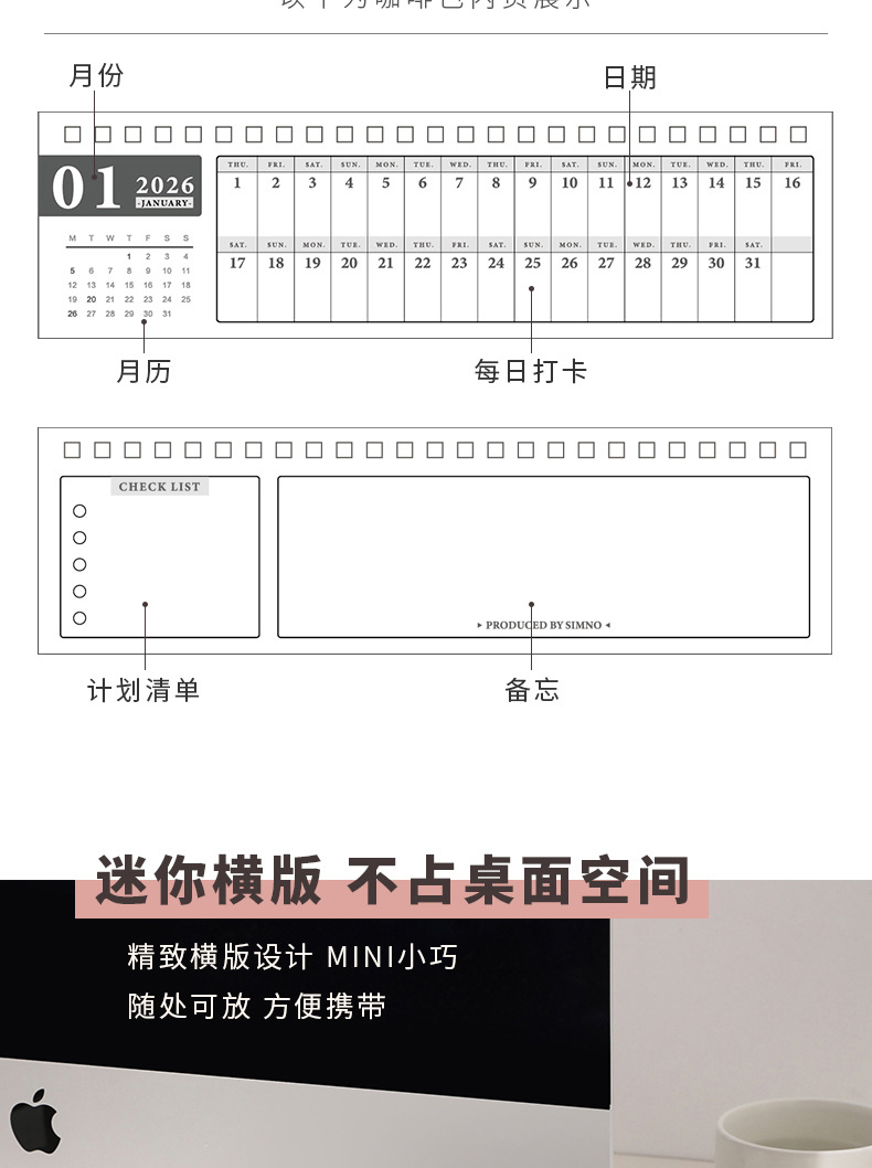 2026 ベーシック卓上カレンダー 新しい 2025 デスクトップ装飾品 シンプルなスタイルのメモ帳 チェックイン 大学院入学試験計画ブック