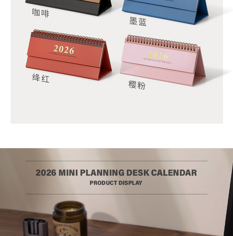仕様 【クリムゾン】ミニ横卓カレンダー 1冊(2025.10~2026.12),【インクブルー】ミニ横卓カレンダー 1冊(2025.10~2026.12),【コーヒー色】ミニ横卓カレンダー 1冊(2025.10~2026.12),【サクラピンク】ミニ横卓カレンダー 1冊(2025.10~2026.12)