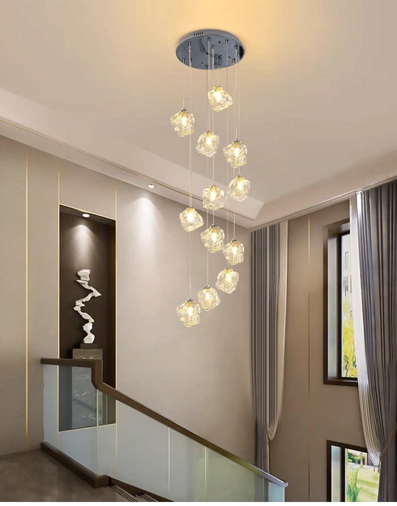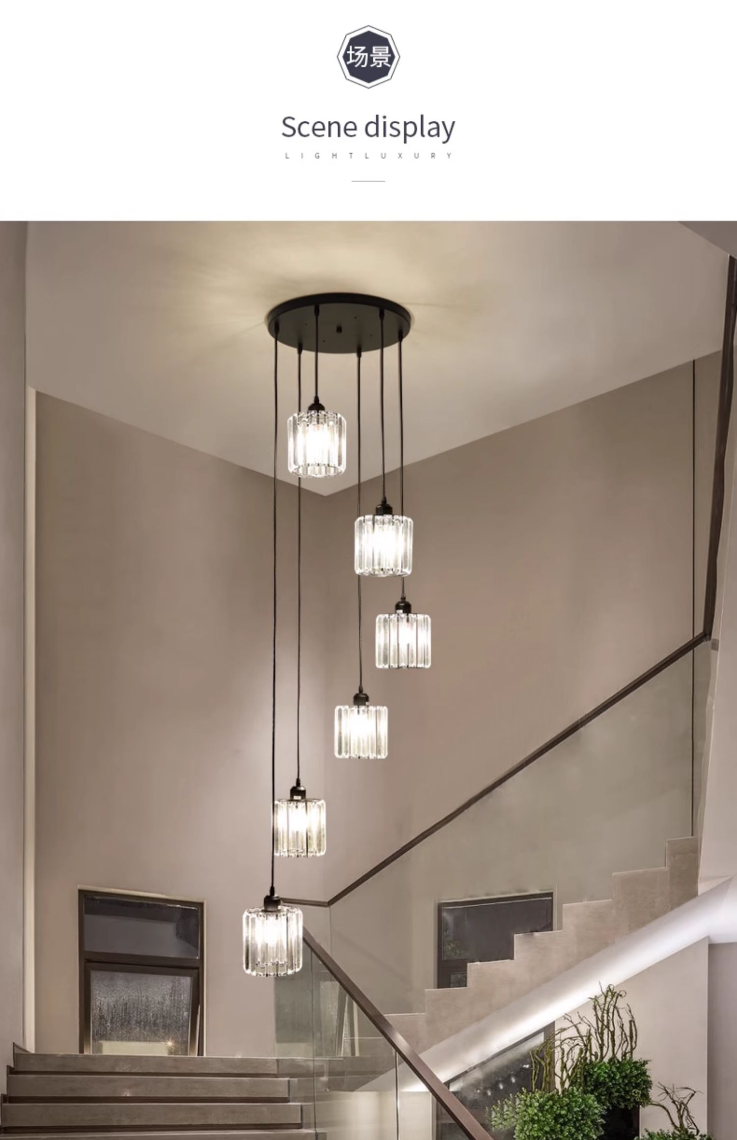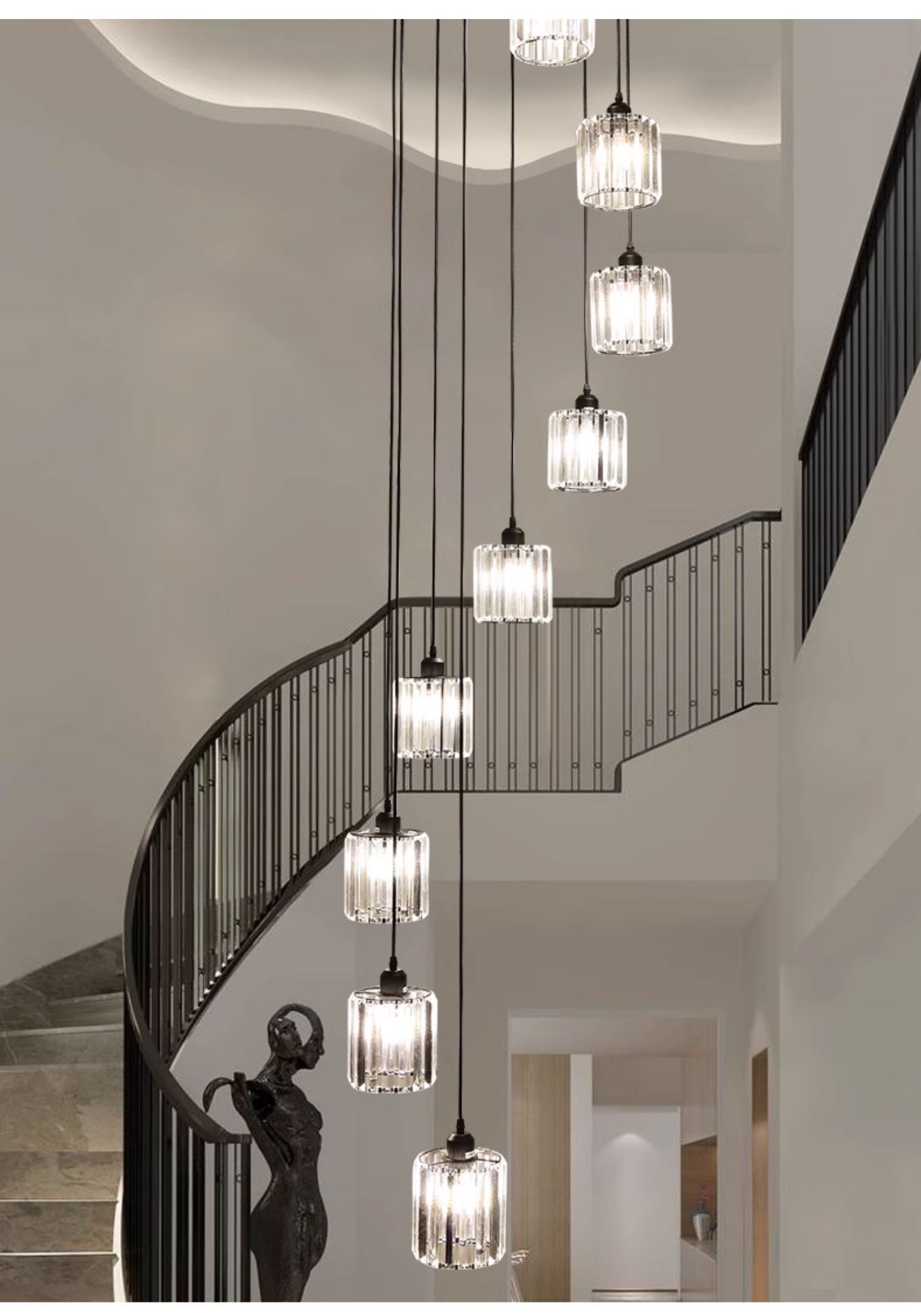 ✅ 階段シャンデリアロングシャンデリアロフトデュプレックスライト高級北欧モダンミニマリストヴィラリビングルームネットレッド回転クリスタル