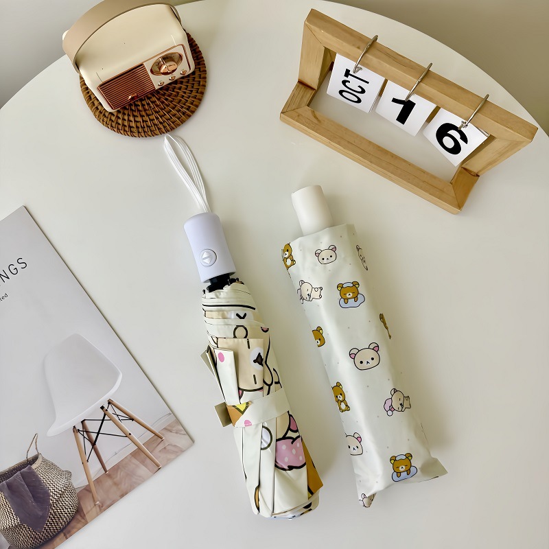 リラックマins雨傘晴雨両用日除け傘黒ゴム日焼け止め紫外線全自動折り畳み日傘女