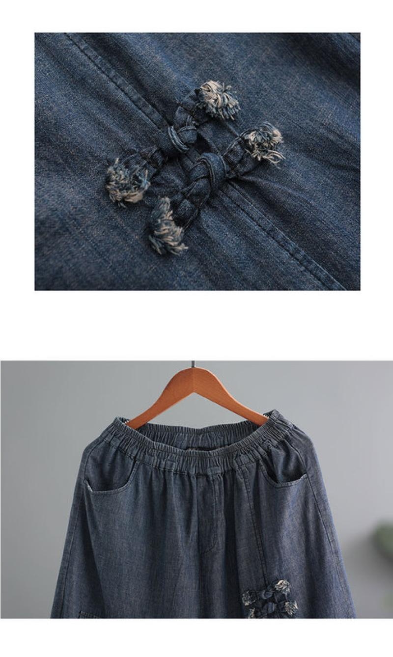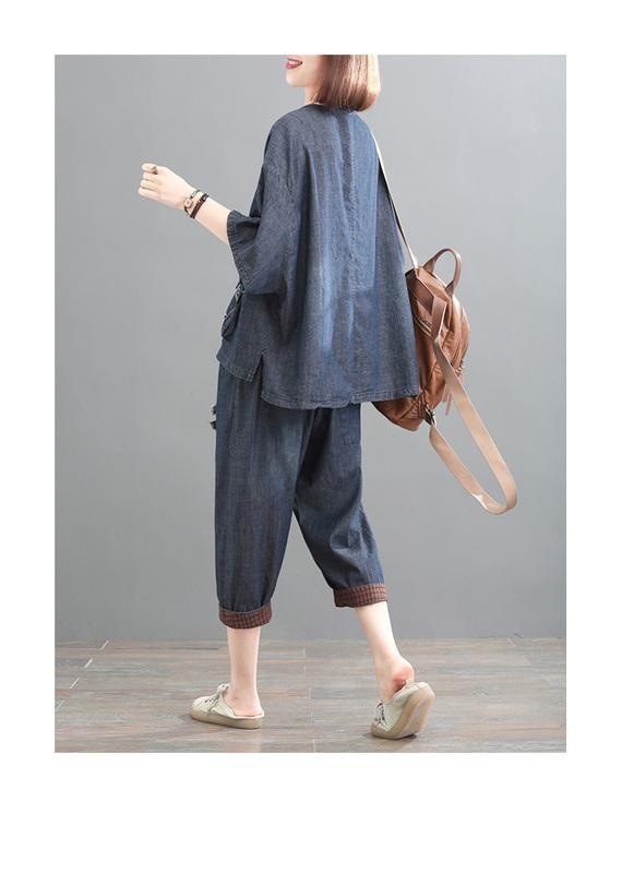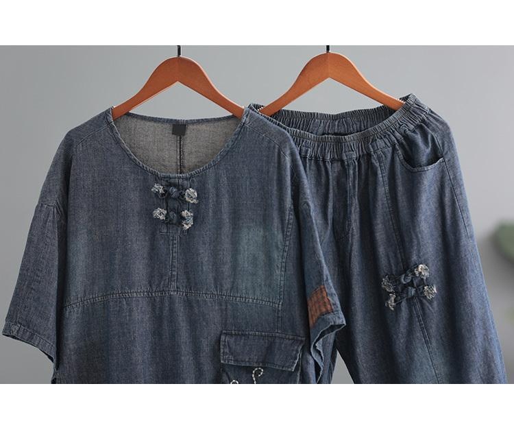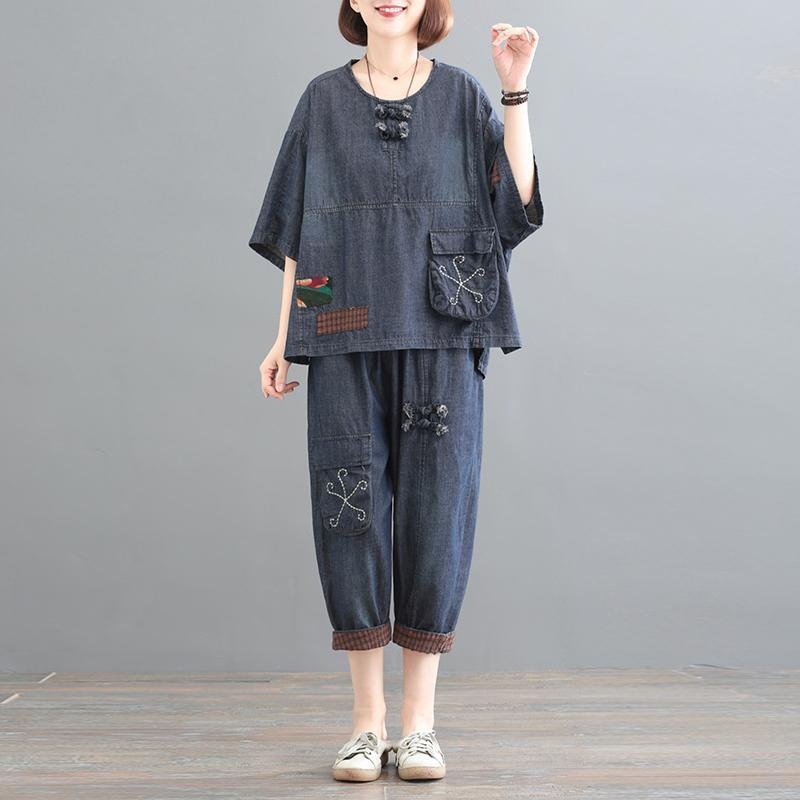 サマースーツ 2025 韓国風刺繍ボタンゆったり大きいサイズ痩身カバーアップレトロツーピースセットファッショナブルなデニム女性