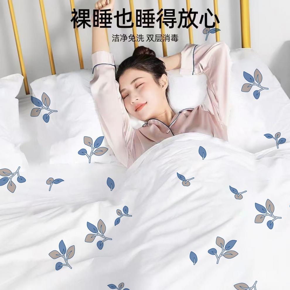 使い捨てベッドシーツ、掛け布団カバー、枕カバー、厚みのある4点セット、ダブル旅行用ホテル寝具、ポータブル